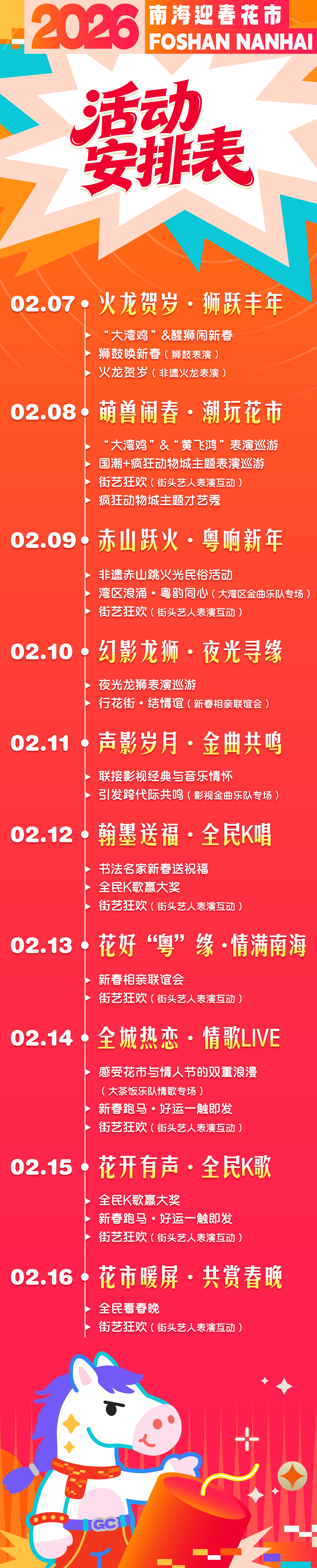 “马上赴桂 心想事城”2026年南海迎春花市即将在2月7日至16日热闹开市!活动将在桂城街道德鸿文汇创意园、K12素质成长Park、南舜怡海港三地联动举办。