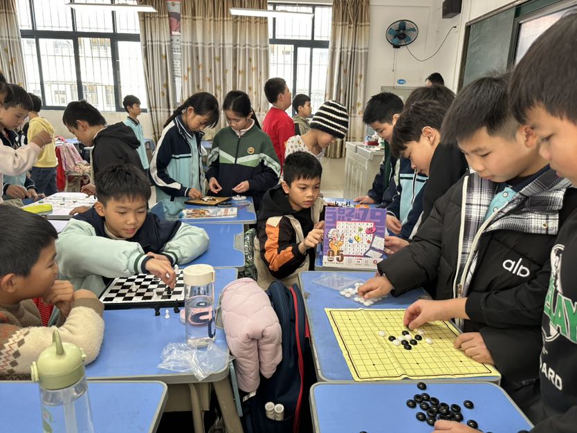学校创新的“盲盒1+N”模式,让每个课间充满新鲜感。每天,各班随机抽取活动组合,既包含毽球等校园特色项目,也有自选内容。走廊成为毽球、跳绳的比赛场,教室则化身棋艺、阅读的静心角。这种分区分类的活动安排,既保证了课间“微运动”,也让学生有了更多放松减压的方式。