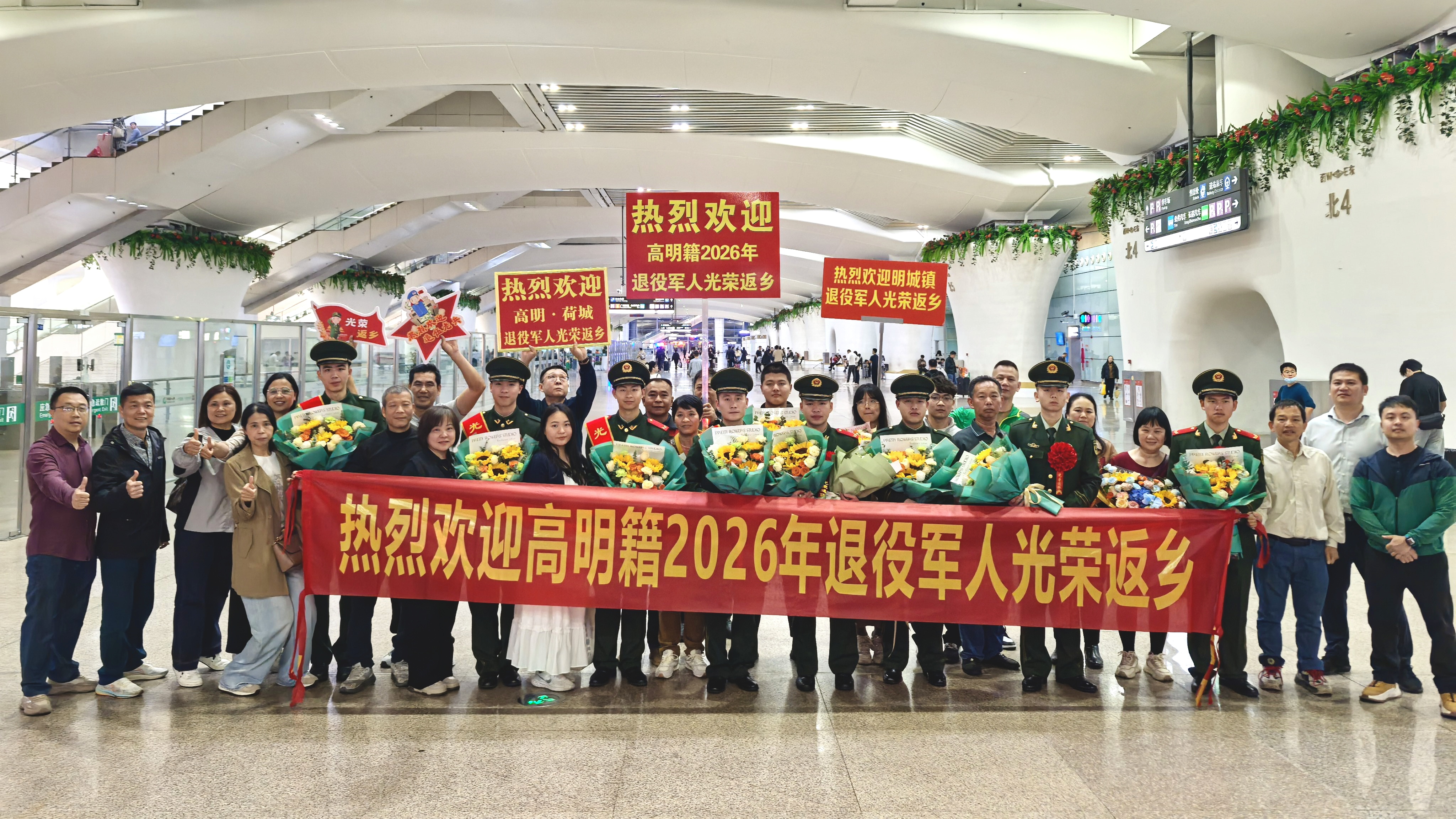 戎装卸甲归故里,载誉还乡启新程。3月1日晚,高明区2026年春季首批10名退役军人圆满完成军旅使命,在广州南站平安返乡。区退役军人事务局、区人武部、各镇街相关负责人与亲友代表组成迎接队伍,以最真挚的温情迎接子弟兵归来,让尊崇与关爱伴随退役军人归家每一步。