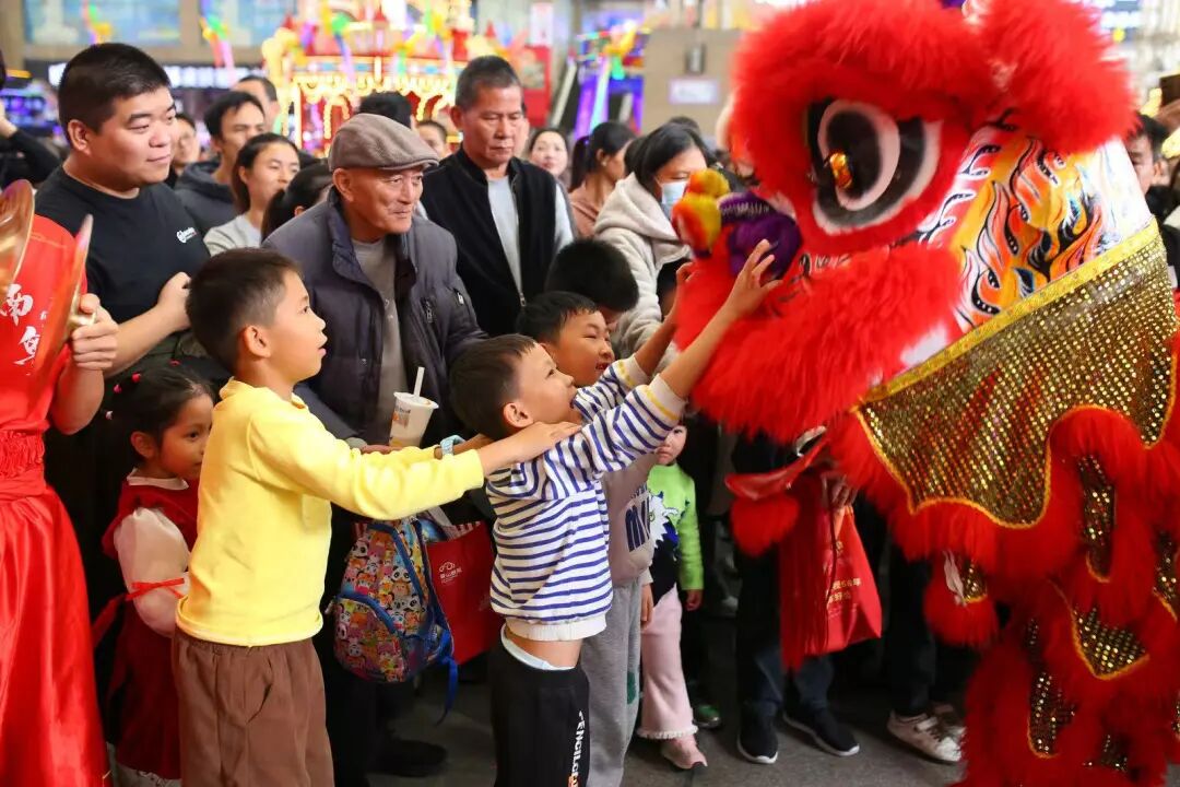 1月30日,东方广场中央广场“鸿运启幕·醒狮送福”磅礴上演!作为庙会的重头戏,醒狮送福、点睛采青仪式将岭南民俗的庄重与热闹拉满!锣鼓喧天中,身披红绸的醒狮队迈着矫健步伐登场,狮头灵动摇晃、鬃毛翻飞,瞬间点燃现场氛围,鼓乐齐鸣,醒狮摇头摆尾“苏醒”,寓意为庙会开启全年好运,为市民游客带来安康。