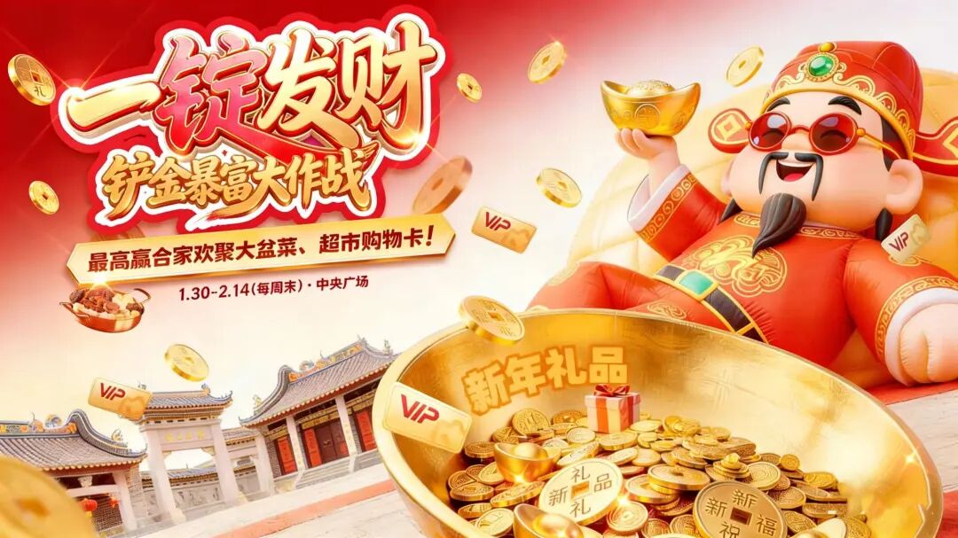 财神爷携众仙童巡游派礼,只要偶遇就能收获金灿灿的开运金币和充满惊喜的利是封。这不仅是讨个“马上发财”的好彩头,更是把新春财运与福气直接送到你手中。接住这份来自财神的专属祝福,新的一年财源广进、万事顺遂。