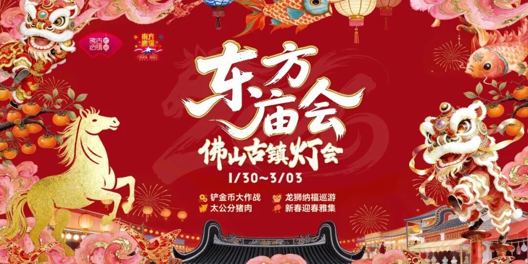 佛山东方广场“东方庙会”1月30日正式启幕!作为佛山民俗文化的重要载体,活动期间,东方广场将化身年味集结地,从百年民俗到科技互动,从非遗传承到亲子同乐,全方位覆盖不同年龄段受众需求,营造“全民参与、全民共享”的新春氛围。
