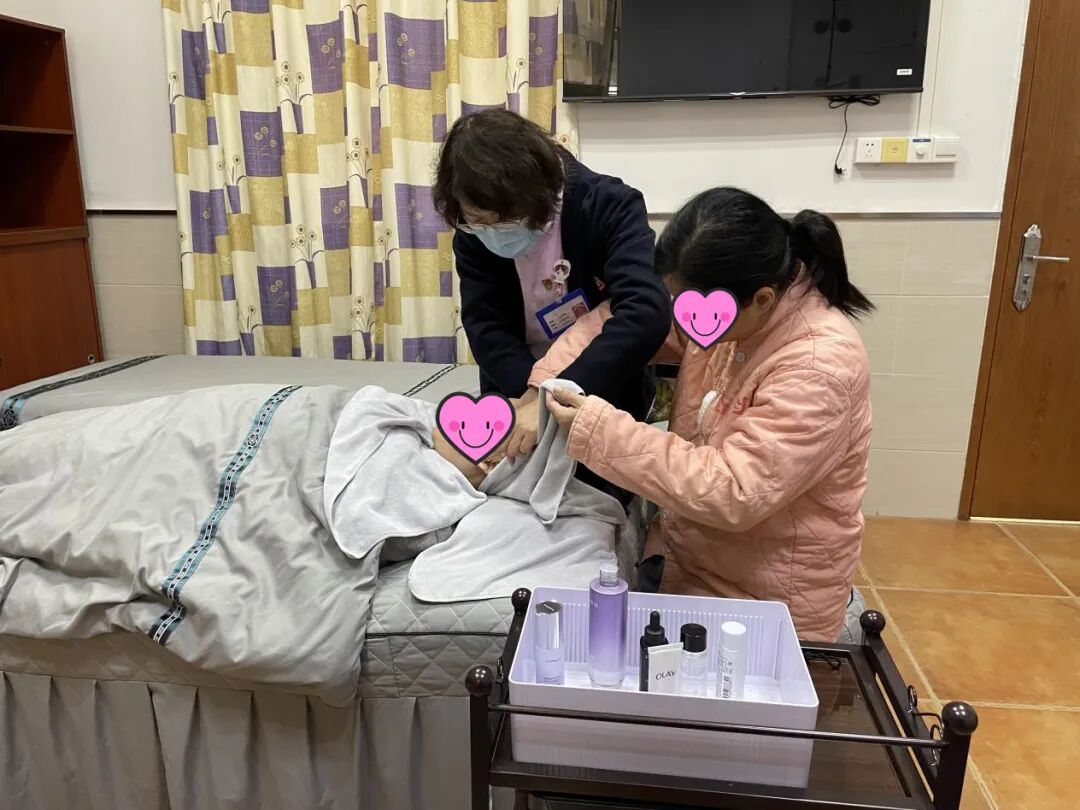 在实际护理工作中,护理人员极为注重细节把控与护患互动。从悉心教导患者如何妥善绑好毛巾以利护理操作,到手把手传授按摩提拉的标准手法,每一项操作步骤均蕴含着护理人员的耐心与鼓励。部分患者由于长期住院,其日常生活自理能力与自我照护意识有所减退。通过参与相关护理活动,这些患者不仅习得了具体的护肤技能,更在专注于“为自己做一件事”的过程中,重新建立起与自身身体的紧密联结,真切体验到了久违的自我掌控感与个人成就感。