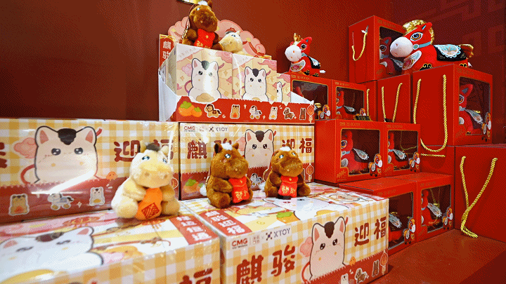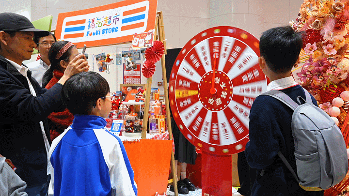 当国潮文化遇见城市脉搏,打造一站式新春购物体验的、位于“深圳之眼”核心区域的新春主题文创快闪店,以其琳琅满目的特色商品成为活动现场的一大亮点。店内陈列琳琅满目,汇聚了众多蕴含春晚文化元素的特色文创产品。其中包括春晚吉祥物“骐骥驰骋”毛绒包挂、“八骏迎祥”春碗、“十二俊”摆盘、“马到成功”八头茶咖具以及“马力全开”系列盲盒等。同时,以“福气”为主题的系列文创也备受瞩目,如设计精巧的“转动福气”冰箱贴、呆萌可爱的“福气猴”毛绒挂件等,每一件产品都承载着浓厚的新春寓意与美好祝福。