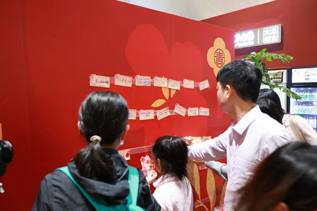 活动现场特设的一面以中国红为主色调的许愿墙,成为承载市民情感与期盼的实体空间。不少往来乘客在此停步,认真写下自己的愿望与祝福,将一面墙渐渐铺满真挚的期许。从稚嫩笔迹到沉稳祝愿,每一张纸条都承载着对2026年的美好向往,让流动的地铁空间弥漫着温馨而充满希望的新春氛围。