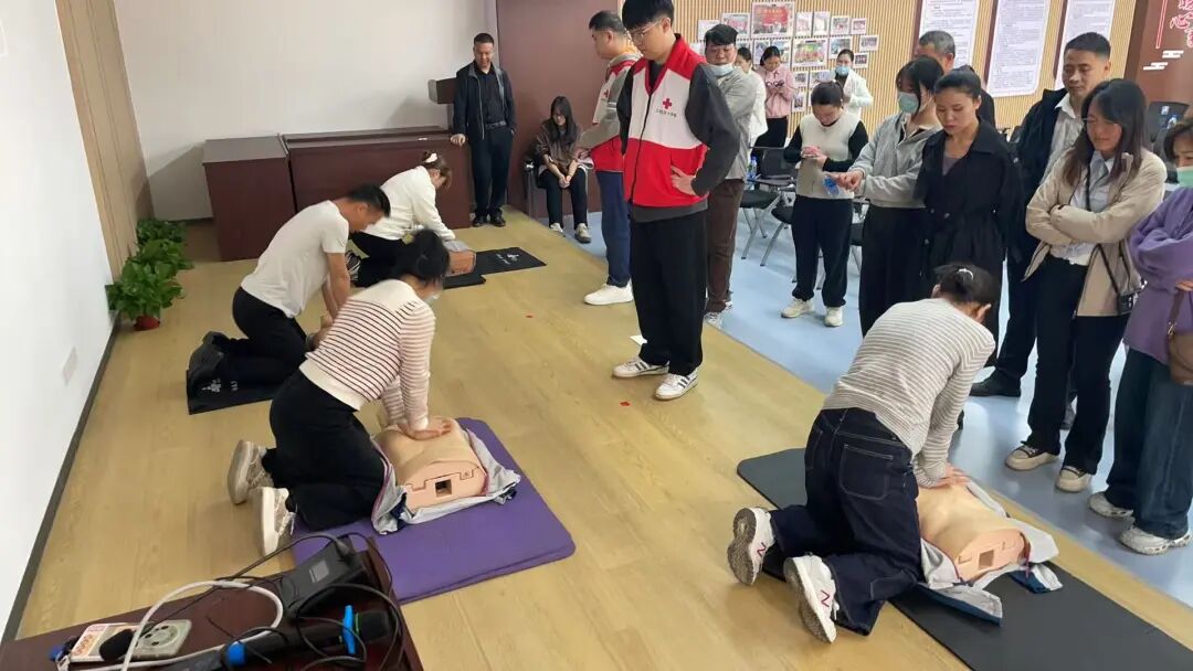 培训中,红十字会专业讲师围绕红十字运动基本知识、救护新理念、心肺复苏术(CPR+AED)、创伤救护、气道异物梗阻急救、常见急症处置、意外伤害应对及突发事件应急处理等核心内容进行系统授课。讲师结合典型案例,精准拆解急救操作关键要点,对心肺复苏的按压深度、频率、通气配合等核心动作进行标准化示范,并针对创伤止血、包扎、固定等实用技能开展手把手教学,现场指导学员反复实操练习,及时纠正不规范动作,确保每位参训人员都能熟练掌握急救技能要领。