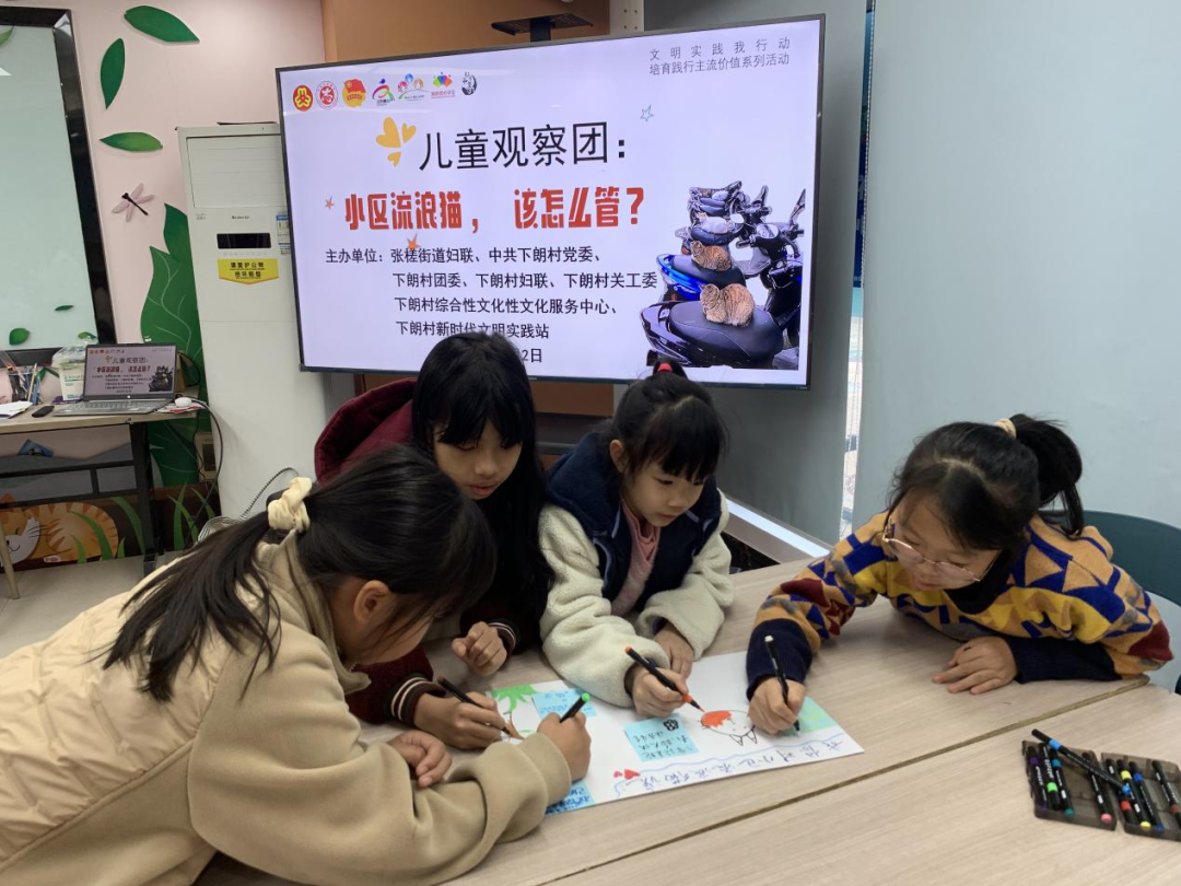 下午的“儿童观察团”活动聚焦“小区流浪猫管理”议题,孩子们化身“小小社区规划师”,踊跃提出设立爱心投喂点、开展绝育手术等建议,笔下的寄语与画作更流露出对生命的关怀与温情。心理健康课堂则通过情绪认知、互动游戏等方式,引导孩子们理解“情绪无好坏”,学会悦纳自我、积极表达,在轻松的氛围中埋下心理健康的种子。
