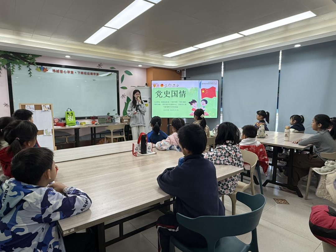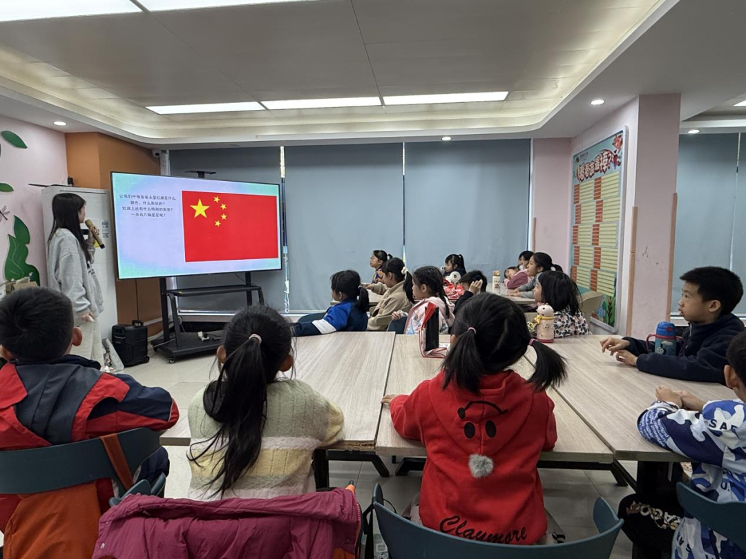 党史国情教育课上,老师以五星红旗为主线,深情讲述国旗背后的设计寓意与历史故事。孩子们神情专注,目光中流露出庄严与敬仰,红色的种子悄然在心田扎根。