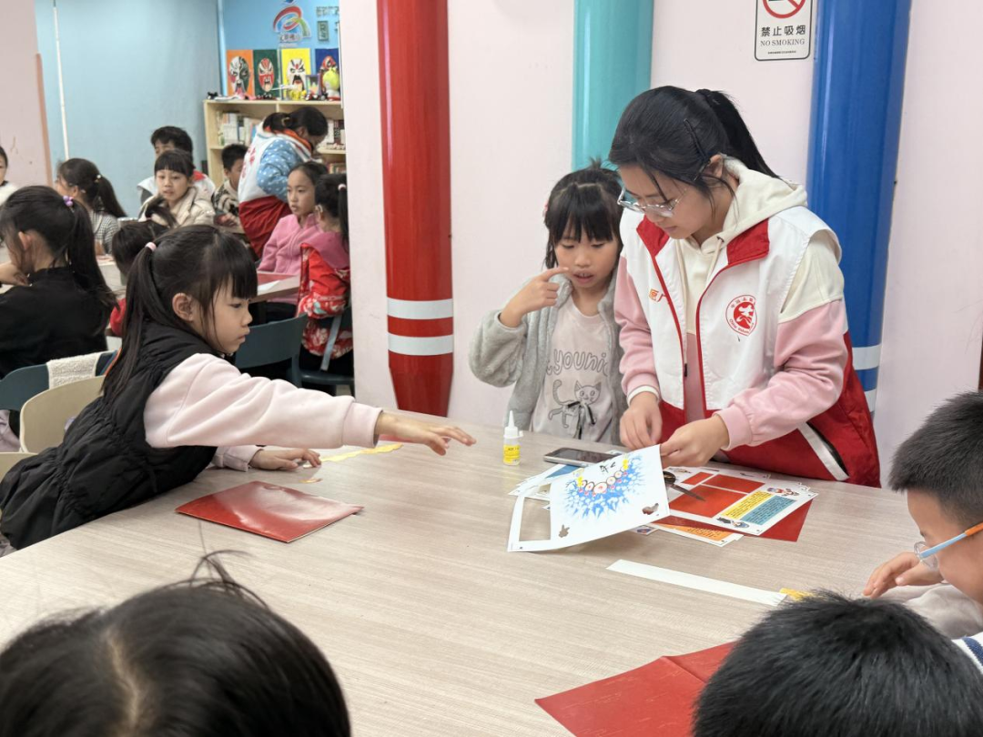 下午的粤剧文化体验课上,孩子们以小组合作形式制作粤剧主题立体书,从了解生、旦、净、丑等行当,到动手绘制、剪贴、组装,将传统戏曲元素转化为可触可感的纸艺作品。这一创新形式不仅锻炼了孩子们的动手能力与团队协作精神,更让非遗文化“可翻阅、可触摸、可传承”。