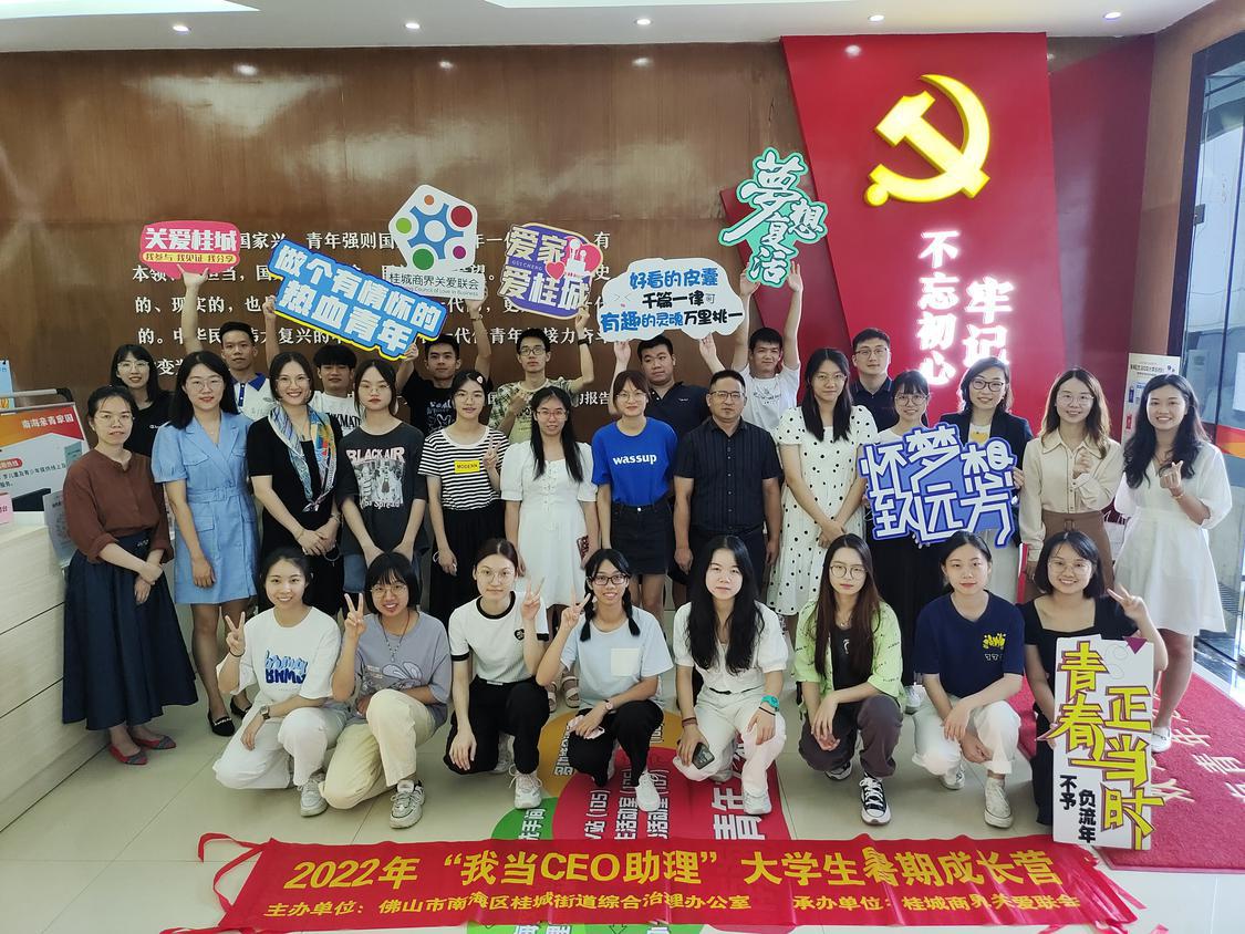 近日,桂城商界关爱联会举办了“我当CEO助理”大学生暑期成长营活动。该活动是在“关爱桂城”建设督导委员会指导下,由桂城商企关爱共融计划发起,旨在推动更多优质企业与青年大学生产生链接和碰撞,通过邀请10家桂城企业单位代表为桂城青年大学生提供专业的职场分享和面试技巧指导,提高桂城大学生的职场核心竞争力。同时,项目也希望关注企业需要,关爱企业员工发展,为参与有爱桂城建设的企业及其员工提供多元服务。