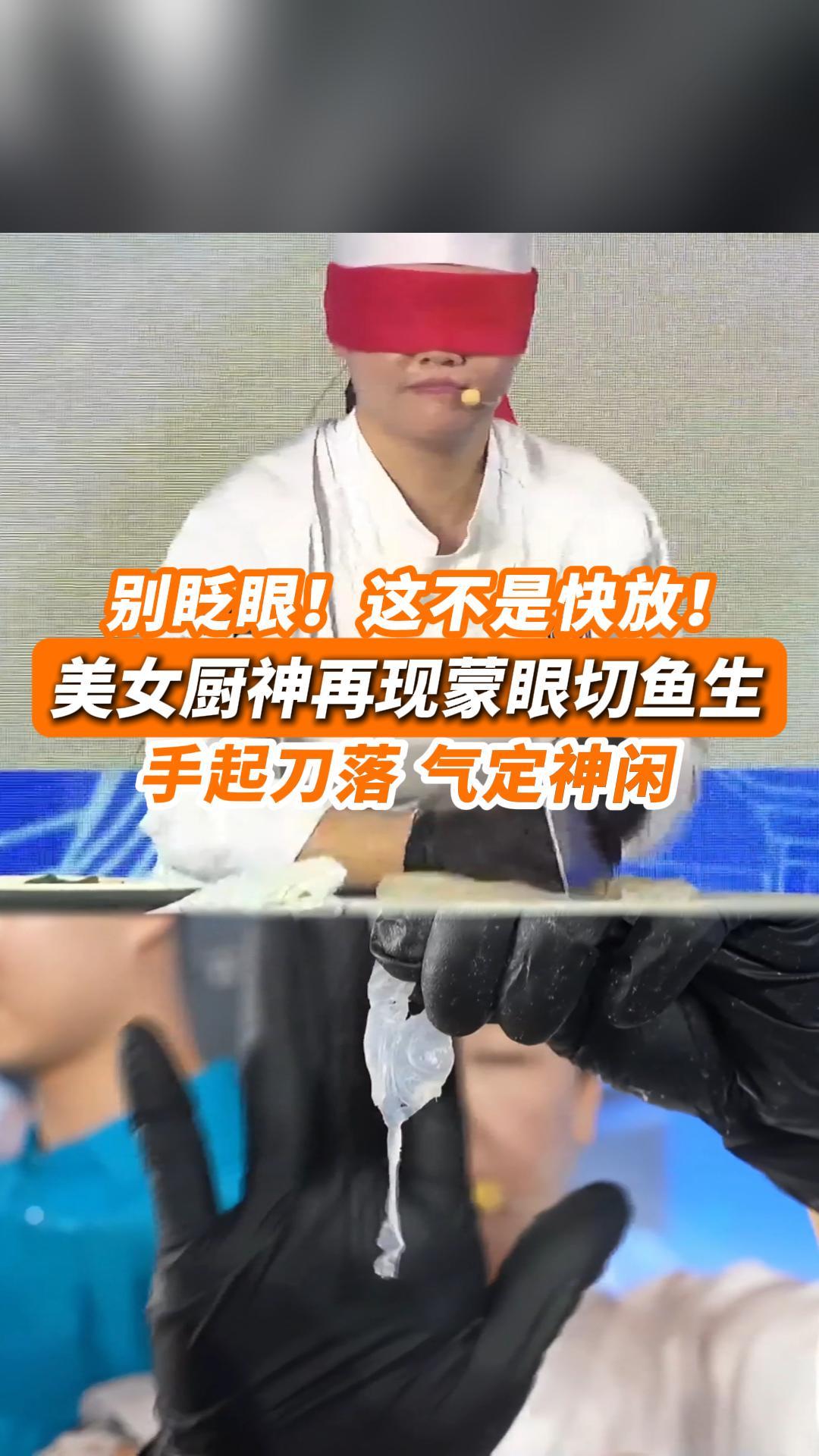 别眨眼!这不是快放!美女厨神再现蒙眼切鱼生!