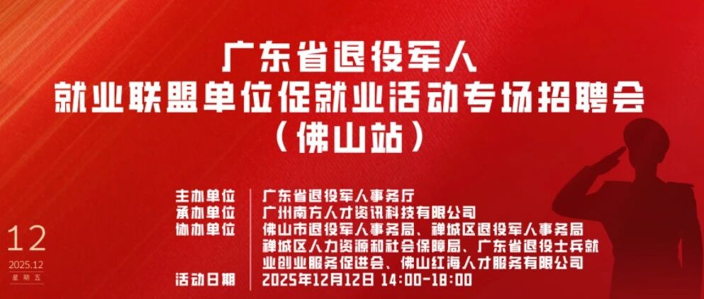 诚邀企业共筑荣耀舞台 !广东省退役军人就业联盟单位促就业活动专场招聘会(佛山站)邀约函