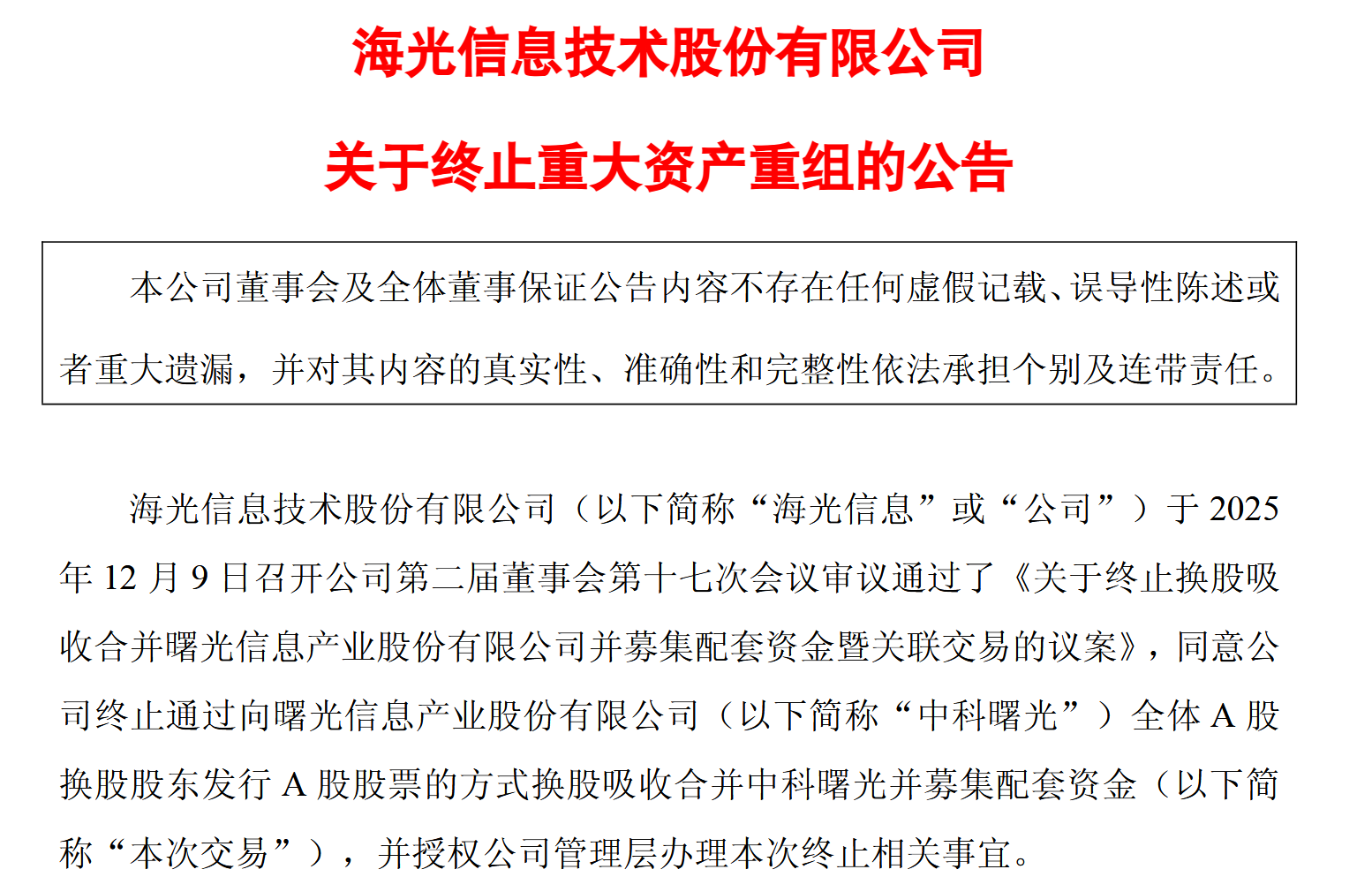 国产算力巨头海光、中科曙光宣布终止重组:“条件尚不成熟”