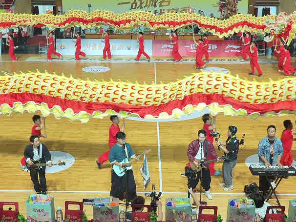 佛山元素直接拉满!粤BA佛山主场热场:舞龙翻腾、醒狮跳跃......