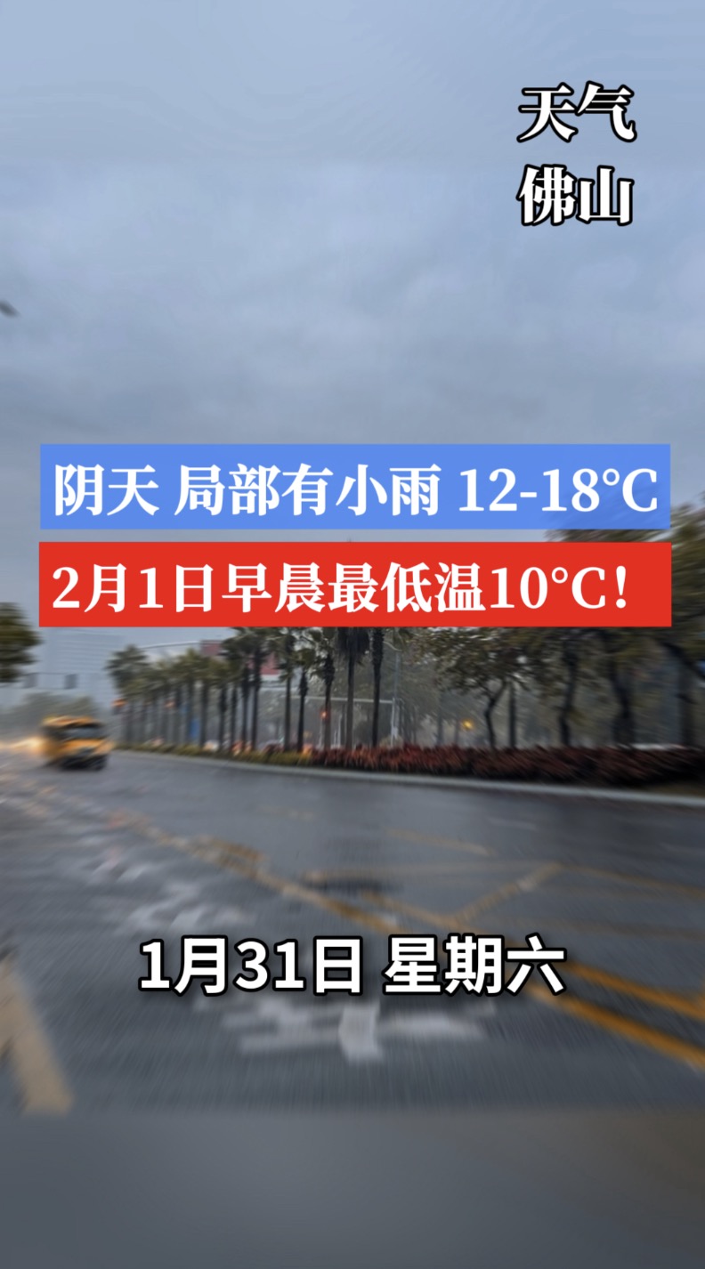 1月31日 佛山天气 阴天 局部有小雨12-18℃ 2月1日早晨最低温10℃!