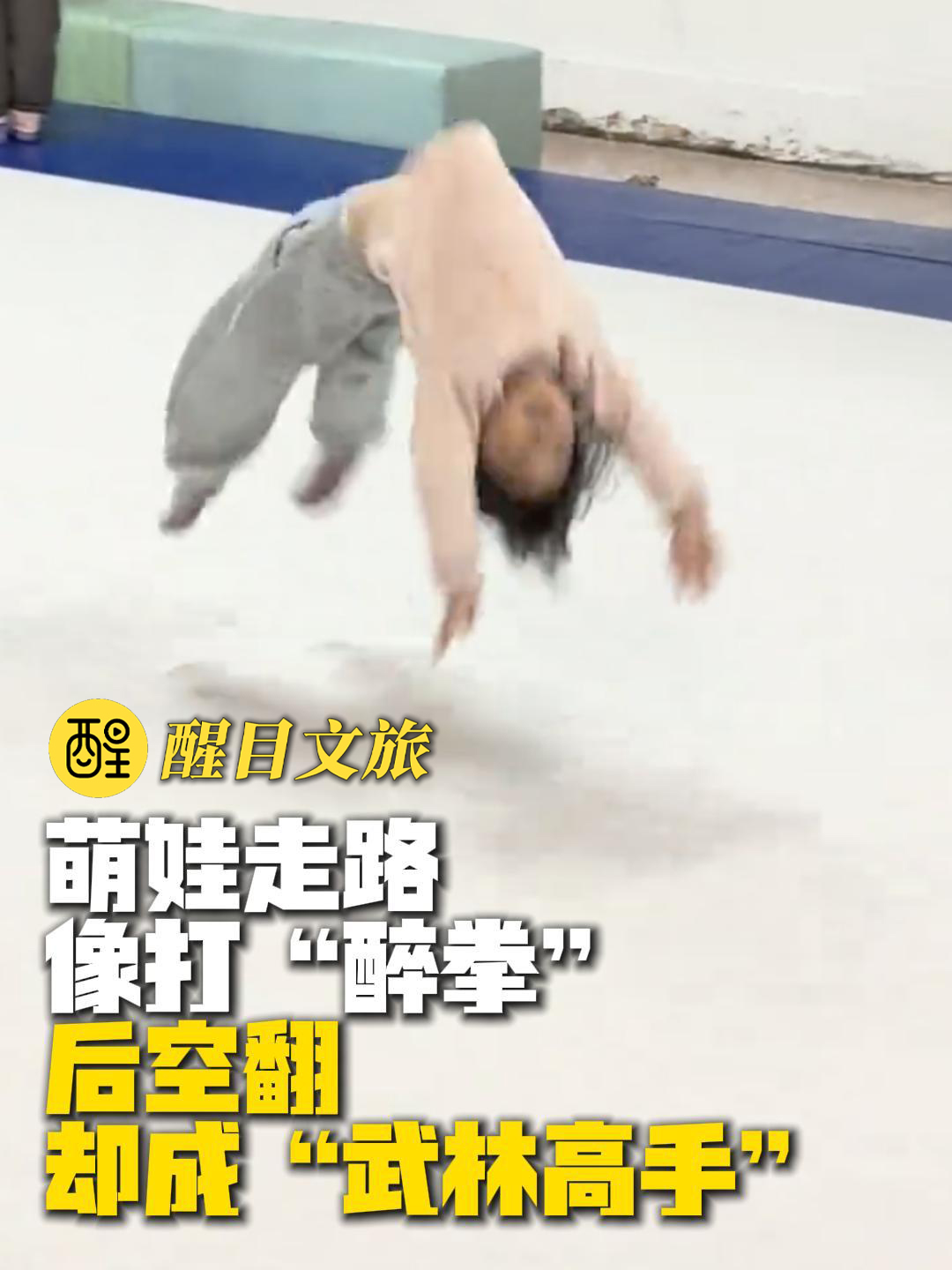 萌娃走路像打“醉拳” 后空翻却成“武林高手”