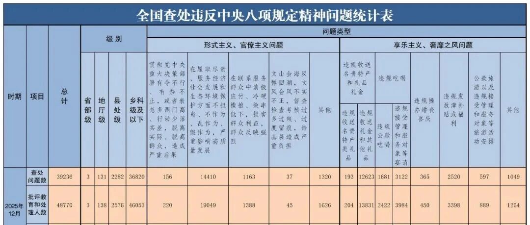 2025年全国查处违反中央八项规定精神问题二十九万余起