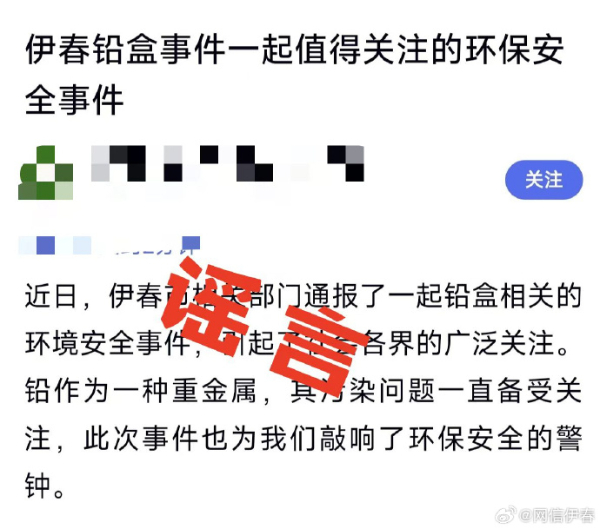 网传“黑龙江伊春通报铅盒环境安全事件”系谣言