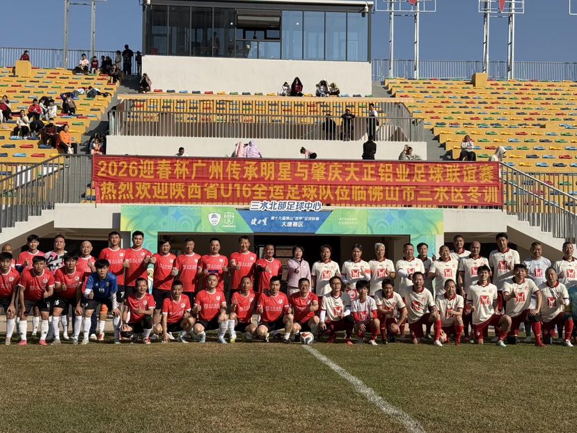 三水的足球集训产业布局呈全域发展态势。位于北部的三水北部足球中心在经过精心养护后,也于近期迎来活动高峰。1月11日,由足球名宿彭伟国、彭伟军领衔的广州传承明星足球队与肇庆大正铝业足球队在此进行“2026迎春杯”联谊赛,彭伟国更将该中心誉为球队的“第二主场”。