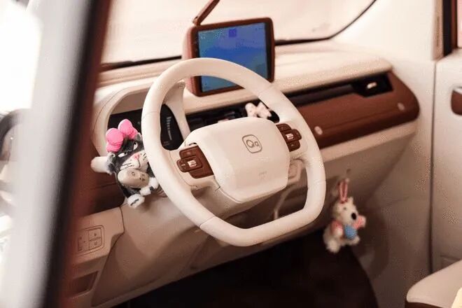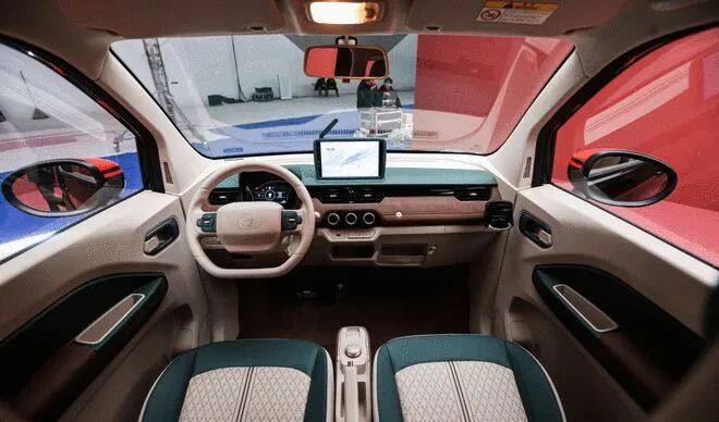新车的长宽高尺分别为3200/1670/1550mm,轴距2150mm。车身颜色上,新车提供古德白、酷盖灰和不焦绿3种车身颜色。其中,古德白、不焦绿外观可选择梦魅蓝内饰;酷盖灰外观可选择胭脂红内饰。