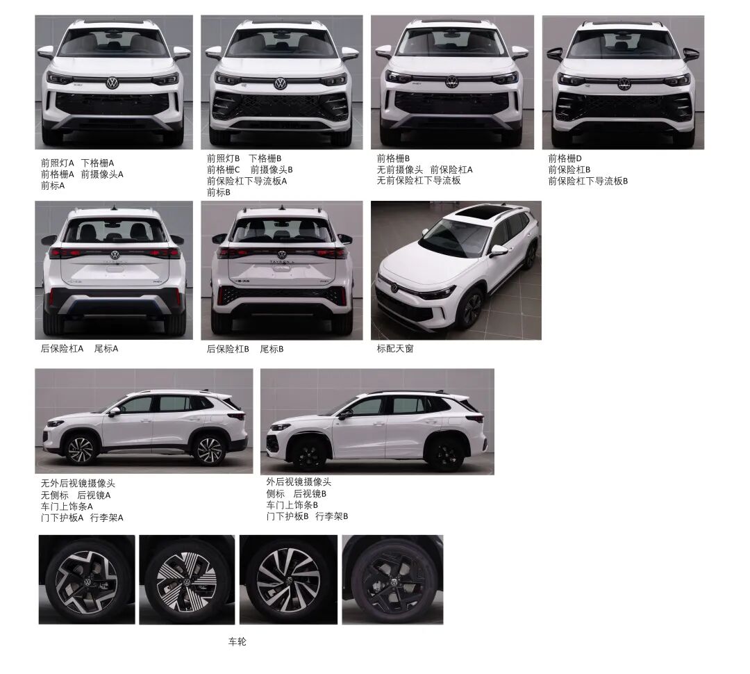 作为探岳GTE的换代车型,外观设计上,新车依然采用燃油版车型的设计风格,仅对细节处进行了优化调整。从申报图来看,新车提供常规版本和R-Line版本两种前脸设计风格,两个版本日行灯均采用贯穿式设计,中央镶嵌了可发光的品牌LOGO标识,点亮后拥有极高的辨识度。有所区别的是,常规版本车型前脸格栅内部采用黑色横向饰条,并配有“PHEV”标识;而R-Line版本车型前脸格栅则采用菱形饰条,两侧带有横向的“风刃”饰条,整体更显运动。