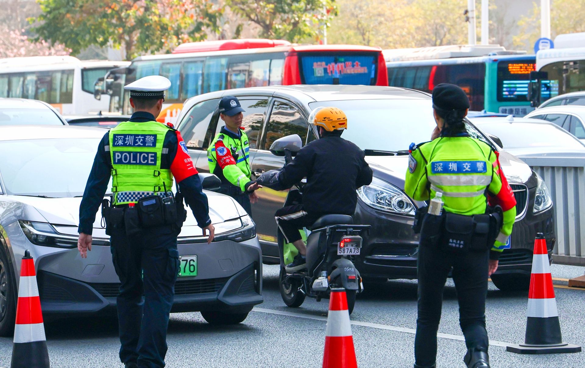 据介绍,此次专项行动不止于单点整治,深圳交警进一步联动全市“大、中、小链路”管控力量,在各辖区高快速路、隧道出入口等关键节点强化值守管控,全力构建“空中劝导、地面查处、节点管控”全链条协同管控体系,形成整治合力,重点整治电动自行车不按规定车道行驶、闯红灯、逆行、违法载人等7类突出违法,严厉打击“飙车炸街”危险行为。