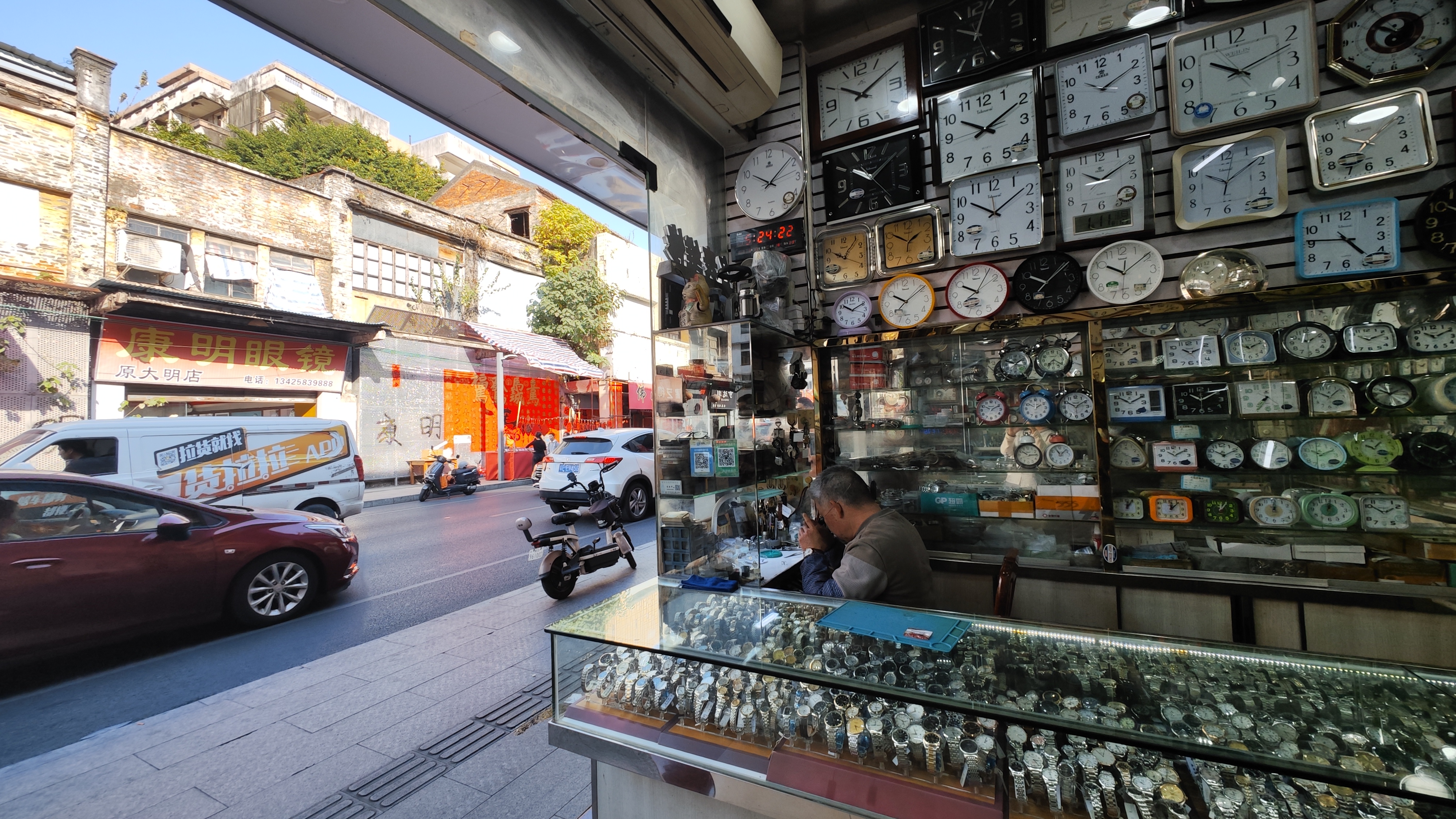 全景作品的旁边,另一幅聚焦老字号的作品同样吸引了不少目光。这幅作品将镜头对准2025年佛山锦华路18号的“锦华钟表”老字号店铺,摄影师以鱼眼镜头的独特视角,将这家钟表维修店的市井烟火与老城底蕴融为一体,画面细节极具故事感。