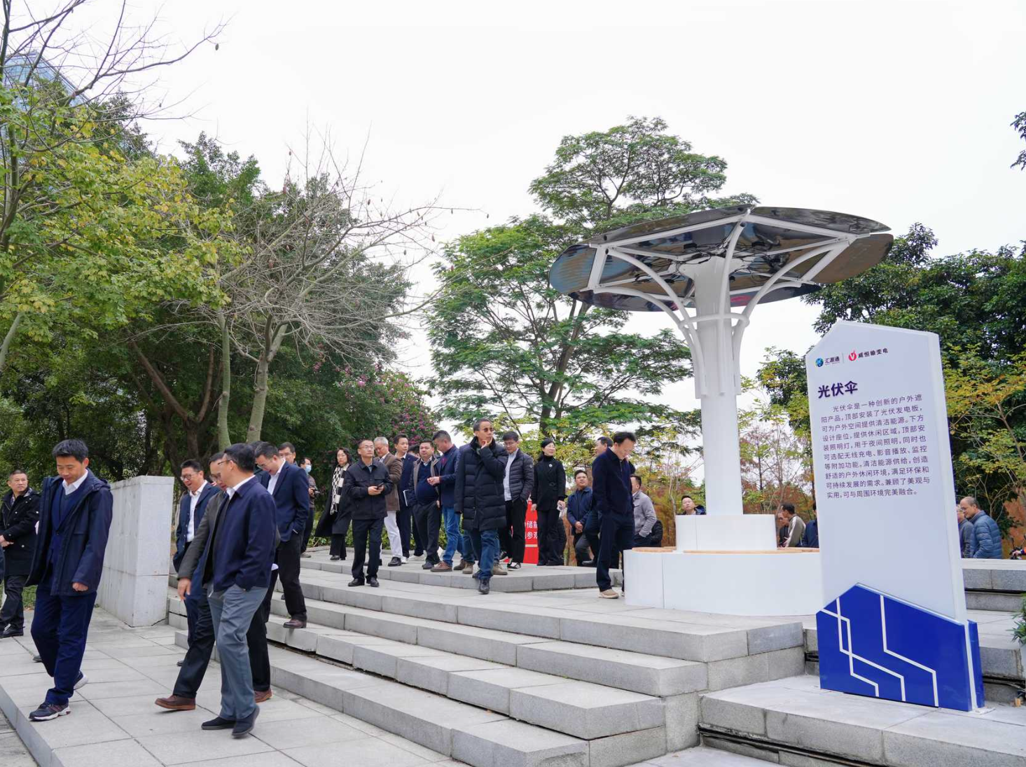 大会伊始,与会领导嘉宾实地参观了佛山首个“源网荷储”一体化智慧电力储能主题公园。作为南海“新电力”产业实体标杆,公园以绿道慢行系统为载体,融合“源、网、荷、储”四大核心要素,将专业电力技术转化为可感知、可参与的生活场景,打造“景随步动、情随景动”的电力生态体验带。