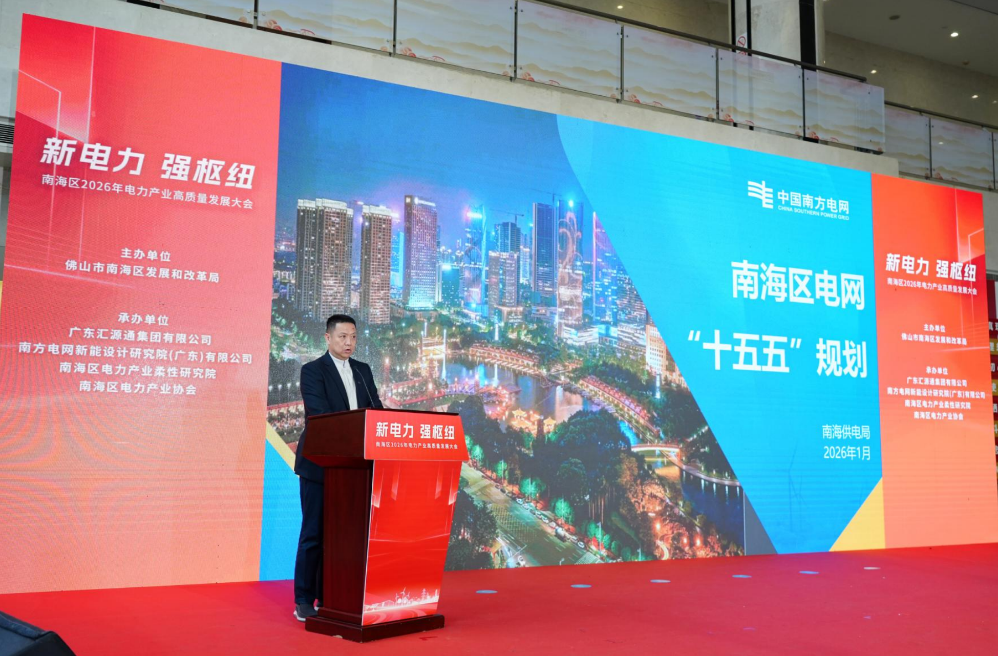 1月23日,南海区2026年电力产业高质量发展大会举办。会上,佛山首个“源网荷储”一体化智慧电力储能主题公园正式开园,三份覆盖消费侧、管理侧、供给侧的电力产业纲领性发展方案同步发布,南海区政府及相关国企与行业领军企业达成总投资超24亿元的合作签约,为南海高质量发展注入澎湃绿色“电动力”,进一步强化枢纽建设,筑牢“再造一个新佛山”的南海支撑。