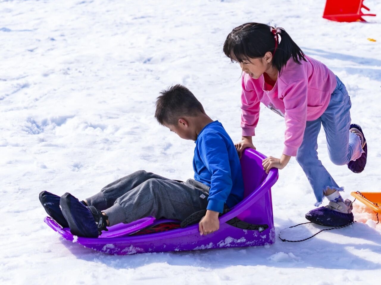 开园首日,记者走访发现,雪场在不同人群适配度上呈现差异化表现。亲子家庭成为主力客群,不少家长带着3-12岁的孩子前来体验。“雪具租赁处有专用的滑雪垫、雪靴和头盔,休息区还提供热水和取暖设备,很贴心。”佛山家长陈先生说,淘雪乐园的挖雪洞、雪爬犁等项目难度适中,孩子能独立参与,是一家大小玩雪的好去处。