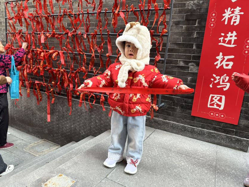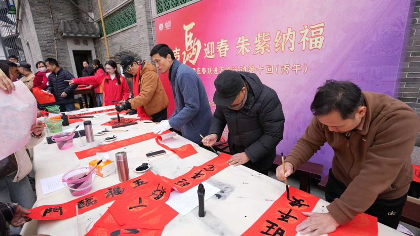 江西来的胡先生拎着两箱玉冰烧,脸上漾着笑意:“买了两箱酒,准备过年回老家与亲戚朋友喝,这可是佛山的味道。”摊位前,书法家挥毫泼墨,一副副春联带着墨香赠予市民;盲盒抽奖区前人头攒动,50%的中奖概率让市民惊喜连连;“新年捉鸡抓大吉”的游戏区更是热闹非凡,赤手逮鸡的欢乐场景,让现场的年味愈发醇厚。