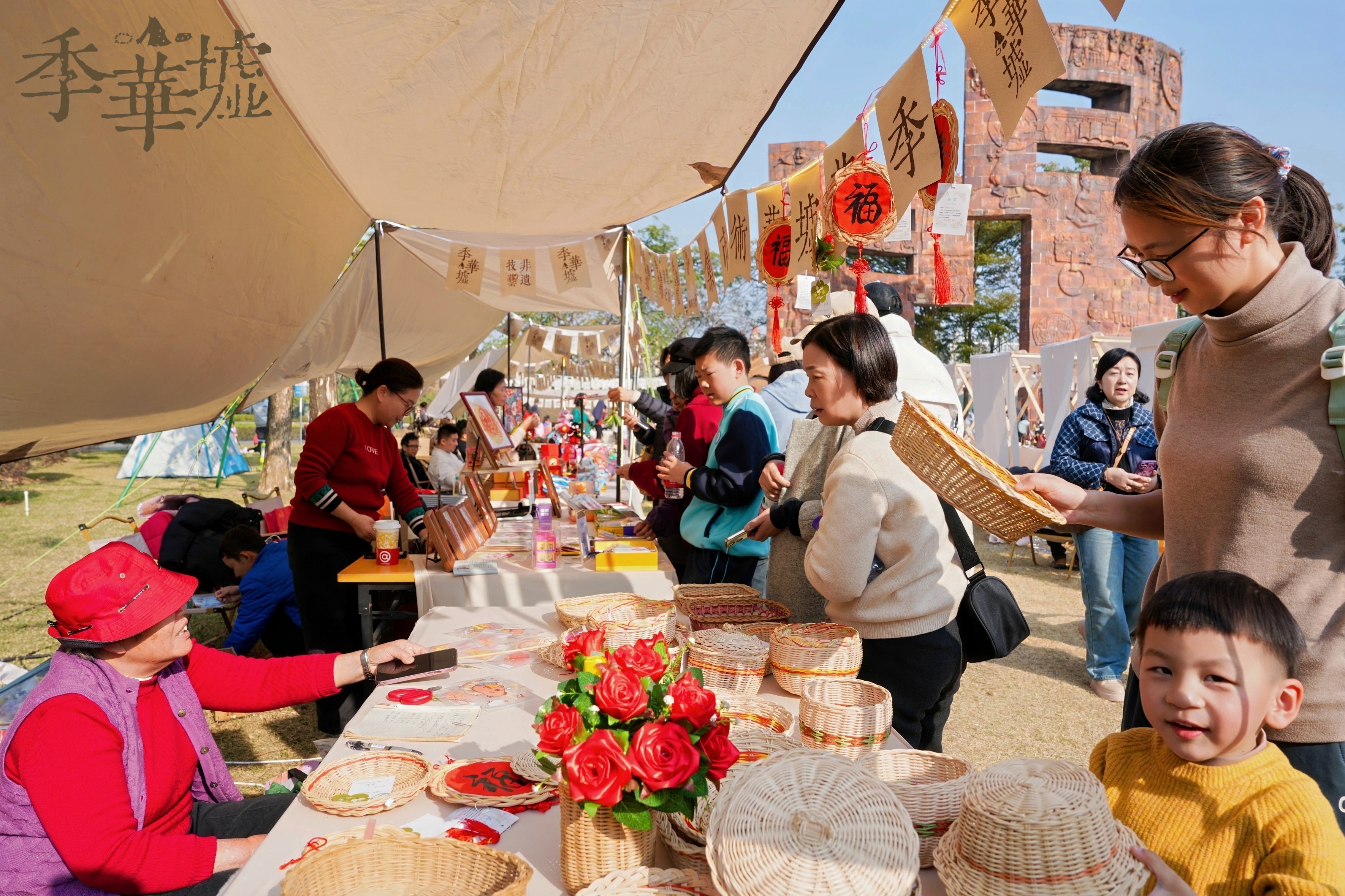 从剪纸的光影流转到陶艺的指尖生花,从年画的朱砂红到竹编的自然肌理,“季华墟”让传统手艺彻底摆脱“老古董”的标签,变成了可触摸、可体验的生活美学。每个摊位都是一张鲜活的佛山文化名片,每件手作都藏着古今对话的巧思——这或许是城市市集该有的模样:让文化不遥远,让传统可亲近。