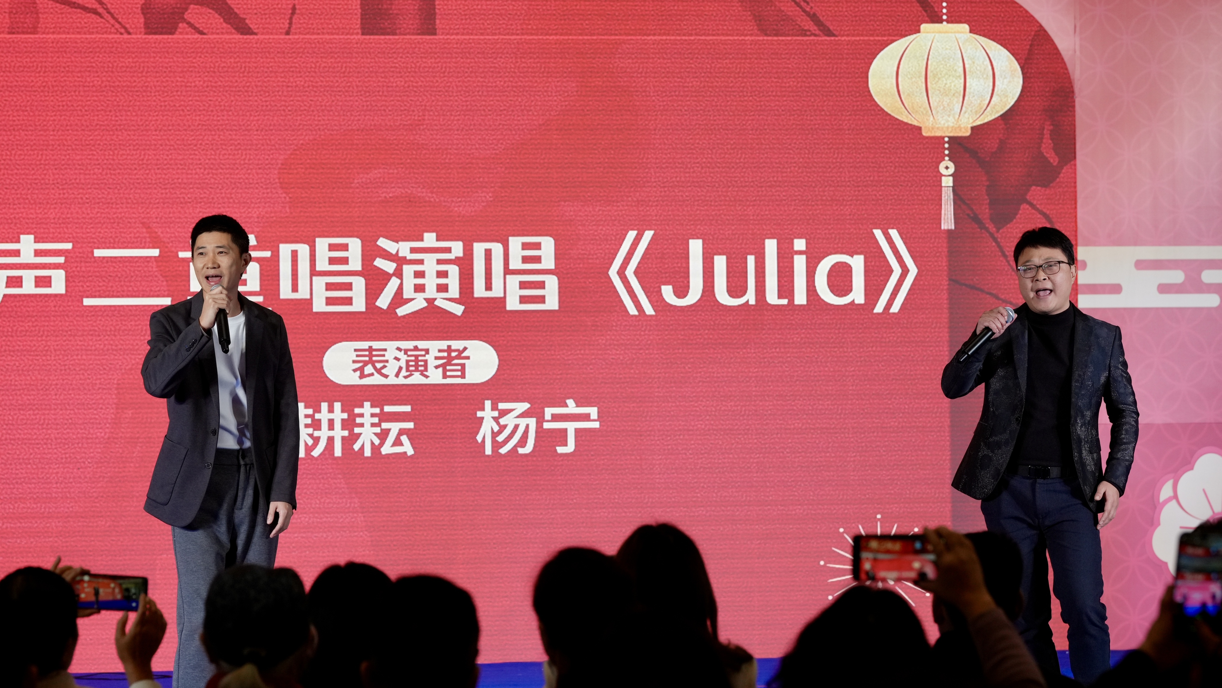 韩耕耘、杨宁两位老师带来的男声二重唱《Julia》默契十足,磁性嗓音交织碰撞,既有深情婉转的演绎,又不失灵动俏皮,引得台下观众跟着节拍轻轻拍手。