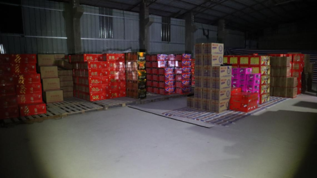 现场检查发现,该厂房内存有烟花爆竹一批,经现场人员清点,核实有2398箱烟花,经初核价值超100万元。该储存场所未采取防爆、防火等安全防护措施,涉嫌非法储存、销售烟花爆竹,存在极大安全隐患。执法人员依法对查获的烟花爆竹进行登记,并妥善转移至安全储存场所,相关调查工作正在同步进行中。
