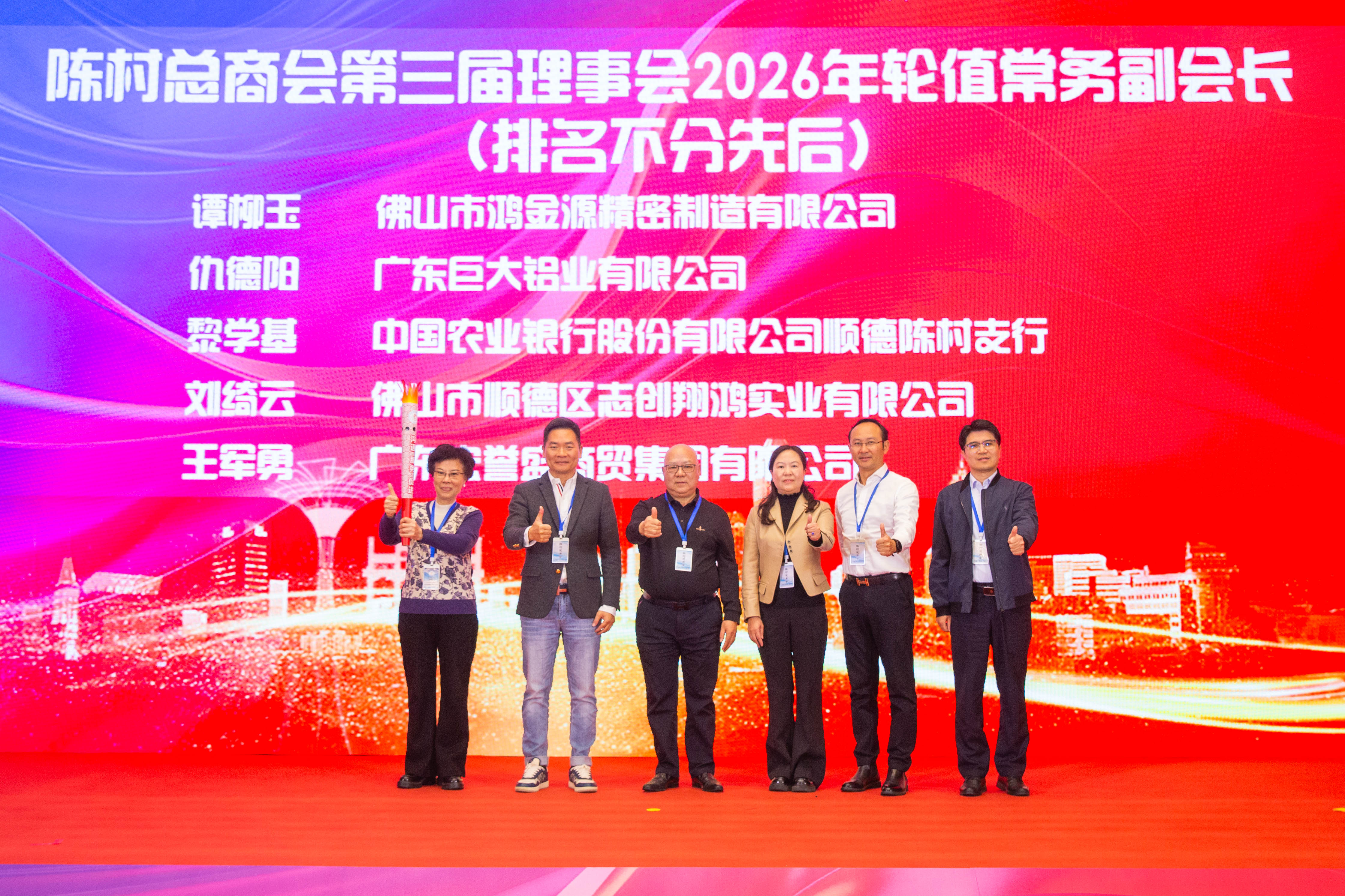 当天,现场还进行了陈村总商会轮值会长交棒仪式、陈村总商会新增理事会授牌。
