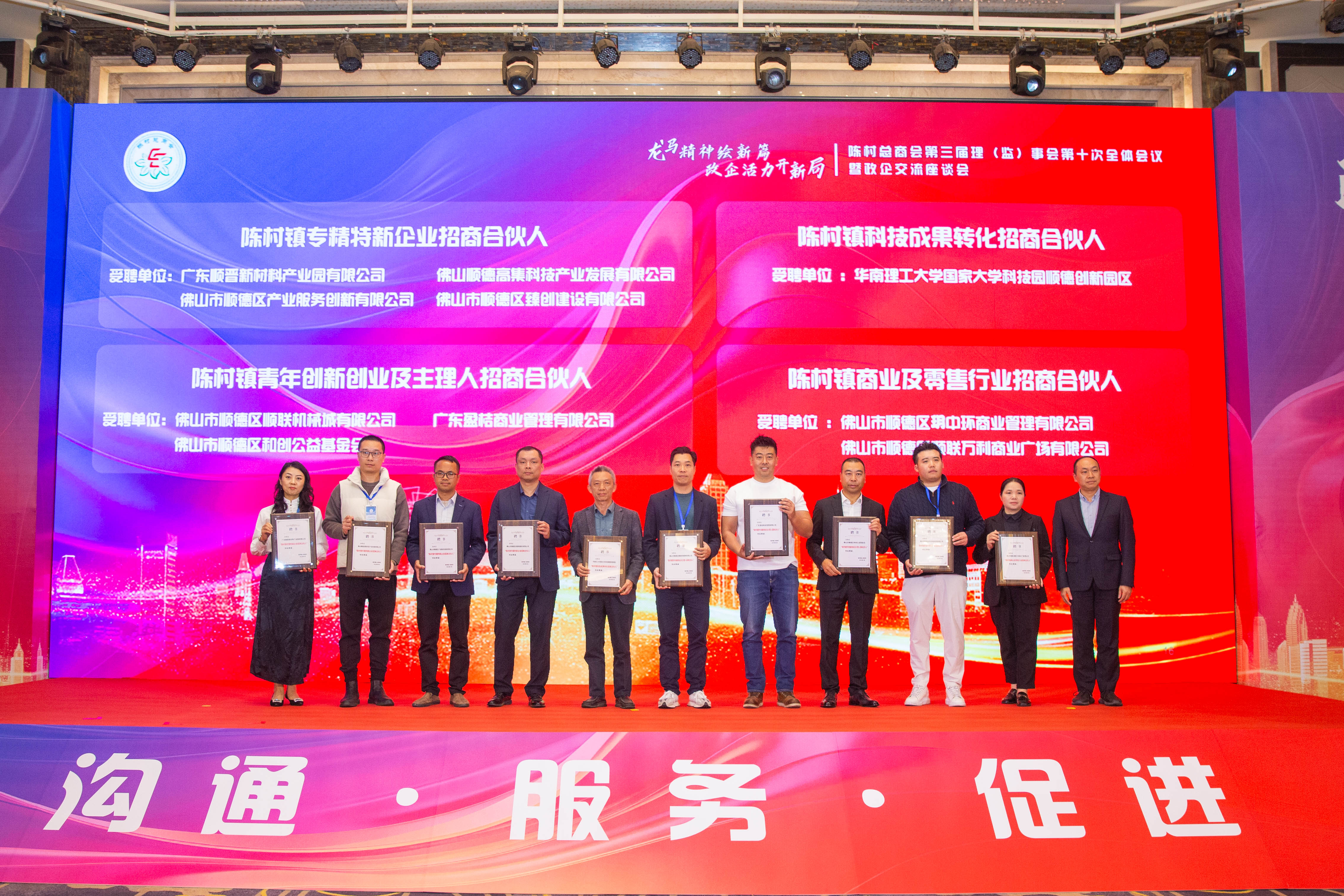 顺晋新材料产业园等成为陈村镇专精特新企业招商合伙人,华工科技园顺德创新园成为陈村镇科技成果转化招商合伙人,顺联机械城等企业成为陈村镇青年创新创业及主理人招商合伙人,玥中环商业等陈村镇商业及零售行业招商合伙人。