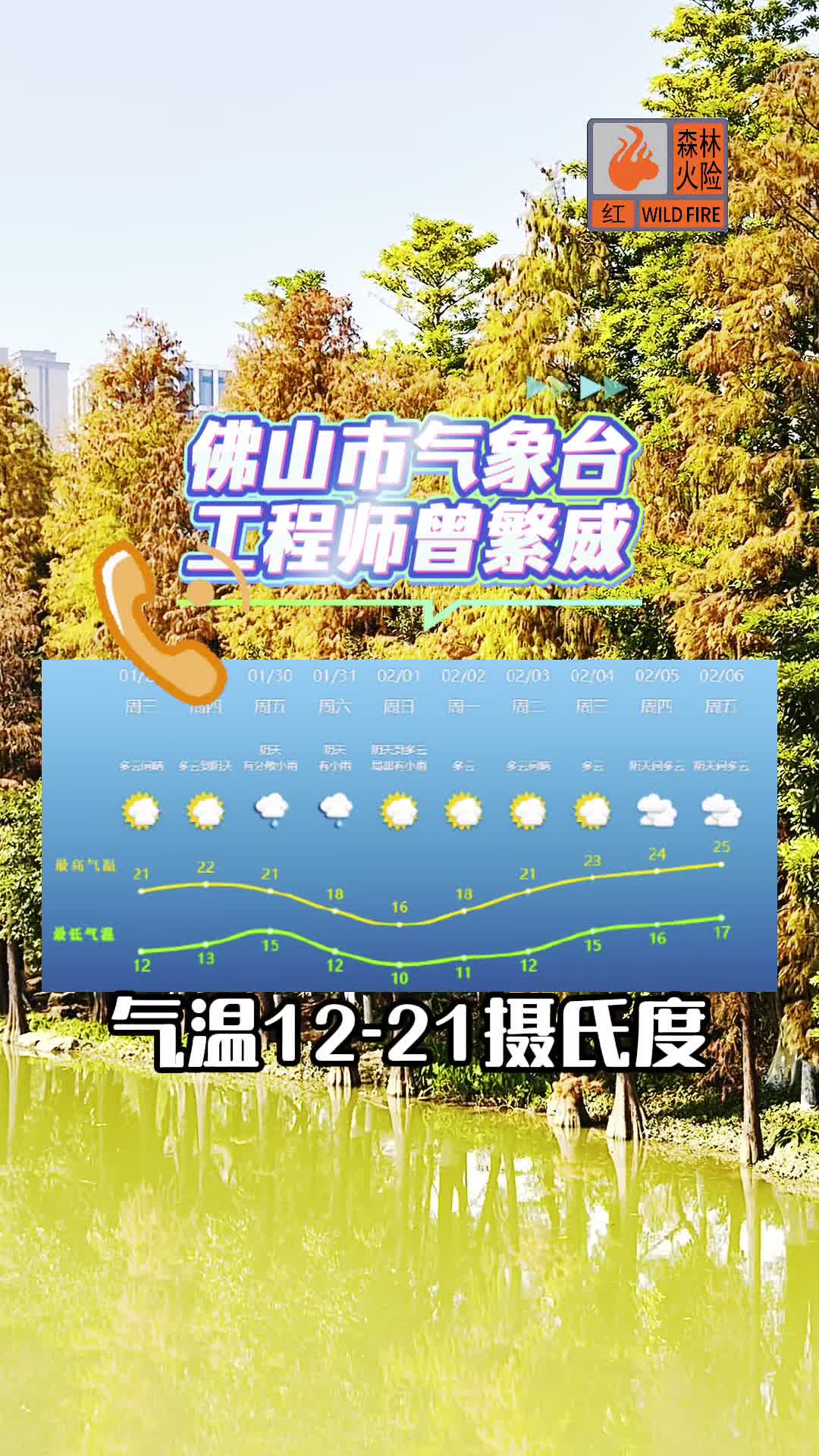 1月28日 佛山天气 多云间晴 12-21℃