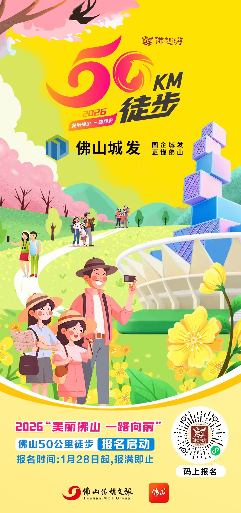1月28日,2026佛山50公里徒步项目发布暨报名启动仪式在佛山市新闻传媒中心举行,会上正式开启佛山50公里徒步报名通道。