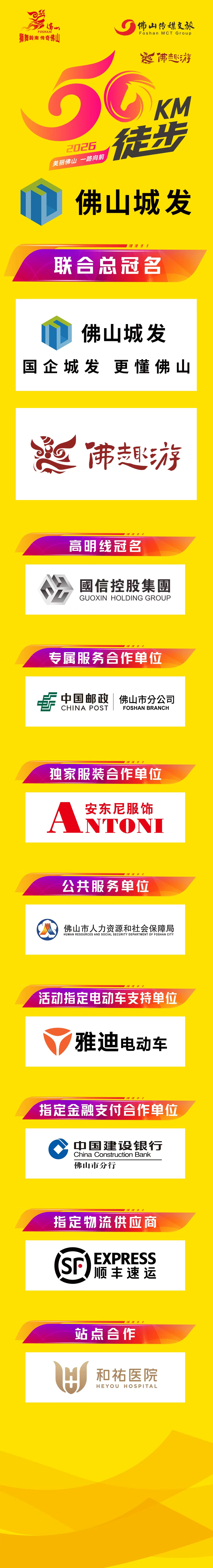 同时,为进一步构建更高水平的全民健身公共服务体系、绿美佛山的生态建设新格局,吹响“百千万工程”冲锋号,提振全社会发展信心、促进消费增长,整合全市体育、文旅、美食及智能制造等资源,通过徒步线路的精心设计、多样态的系列主题活动策划、线上线下综合互动方式,打造出“体育+美景”“体育+美食”“体育+优品”“体育+AI”等精彩纷呈的多维盛宴,激发城市活力、促进消费扩容增长。佛山50公里徒步IP的提质升级,不仅是一场全民健身的体育盛会,更是一次面向大湾区乃至全世界的大型“城市巡礼”,打造生态与都市交融、文体旅深度聚合的高质量发展新标杆。