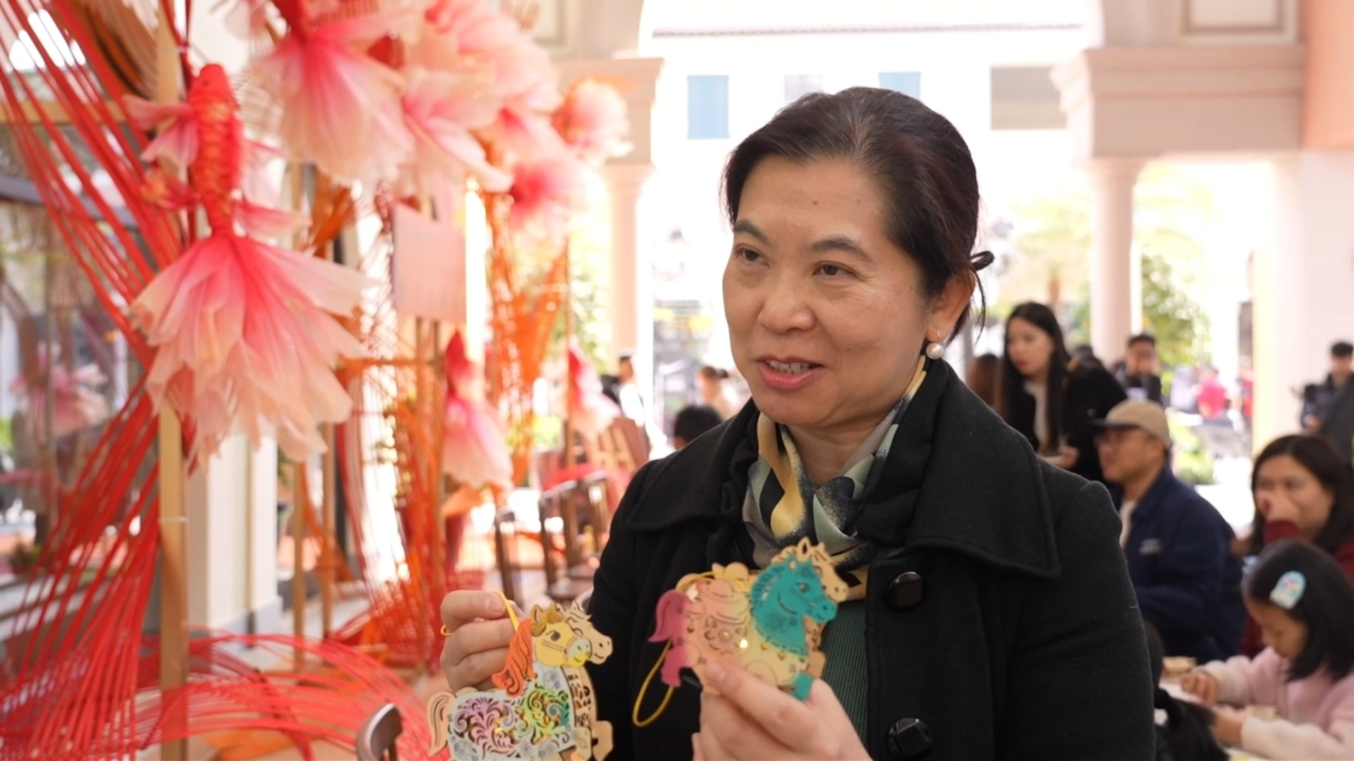 除了彩灯,被誉为“软黄金”的国家级非遗香云纱也通过创意设计焕发新生。原本多用于传统服饰的香云纱,如今被创新应用于马年挂饰、年轻化衣裙等文创产品中。