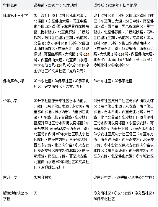 ▶佛山市禅城区第六小学、怡东小学、第十三小学其余招生地段保持不变。