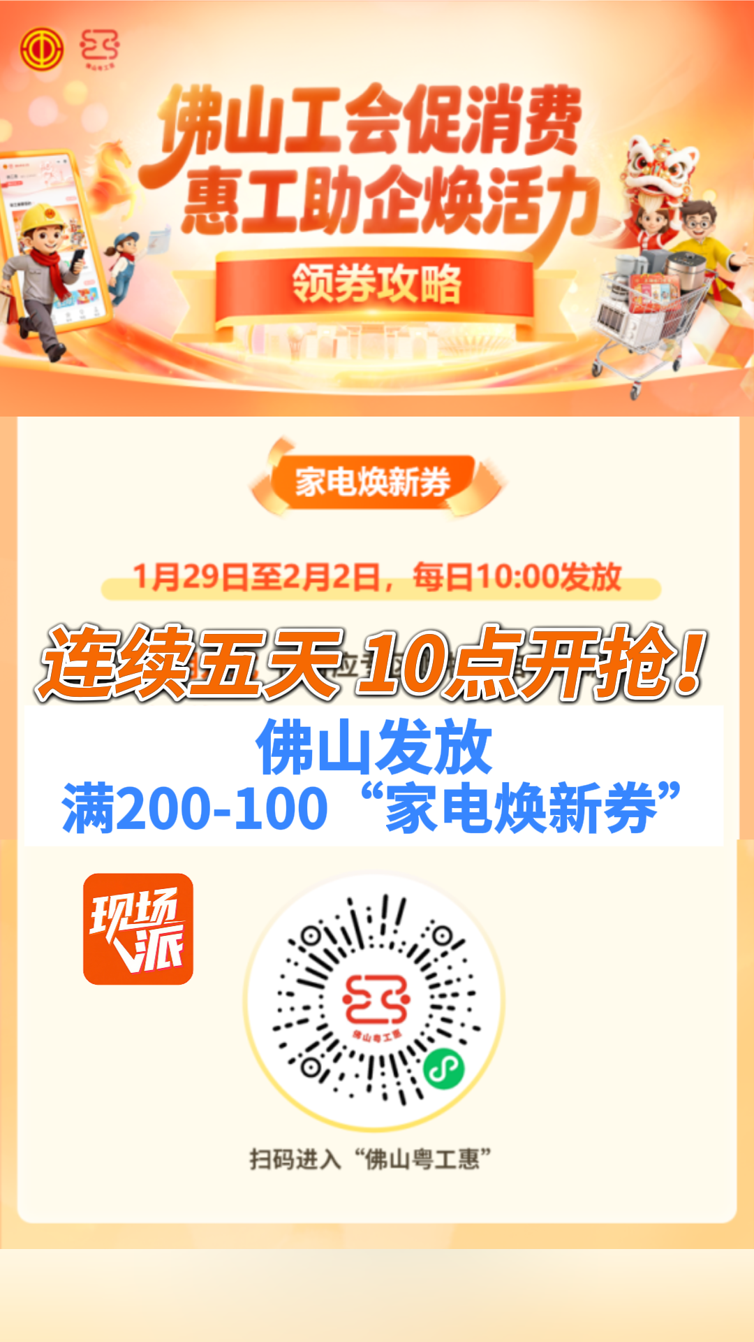 连续五天 10点开抢!佛山发放满200减100“家电焕新券”