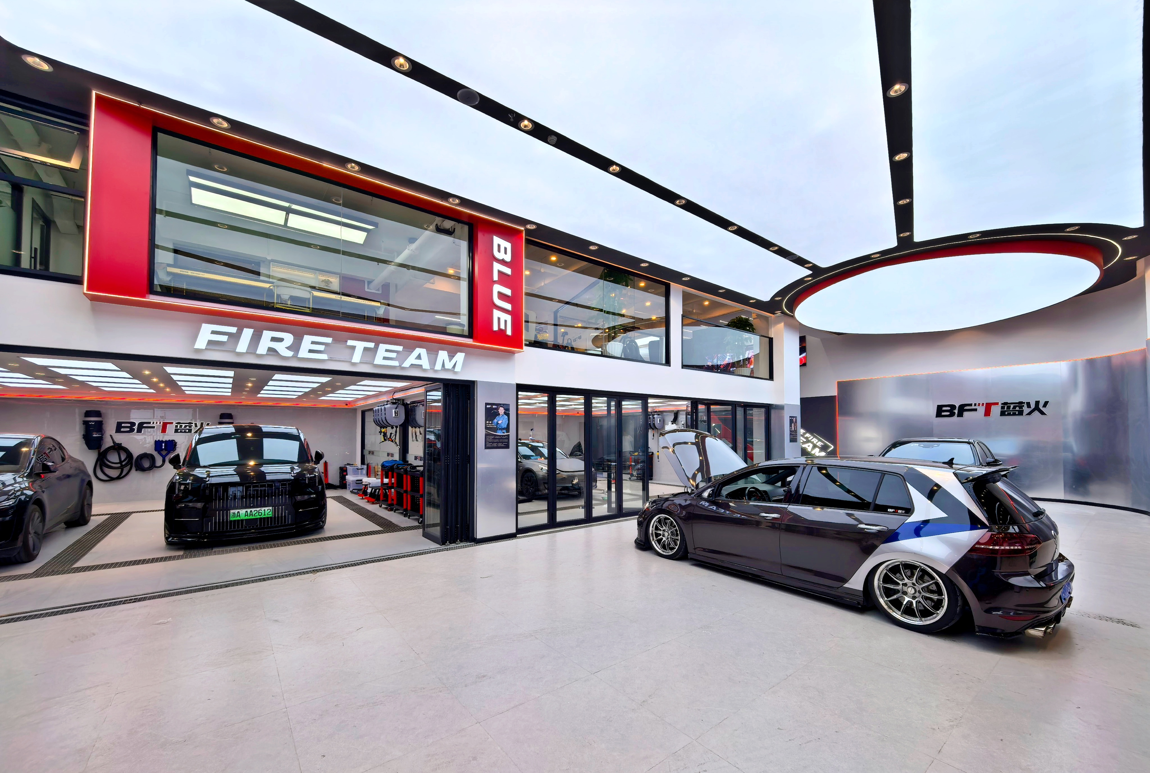 具有新能源属性的售后连锁店将加快布局。定位新能源升级改装连锁品牌蓝火将落户佛山第11家店。供图/朱建敏