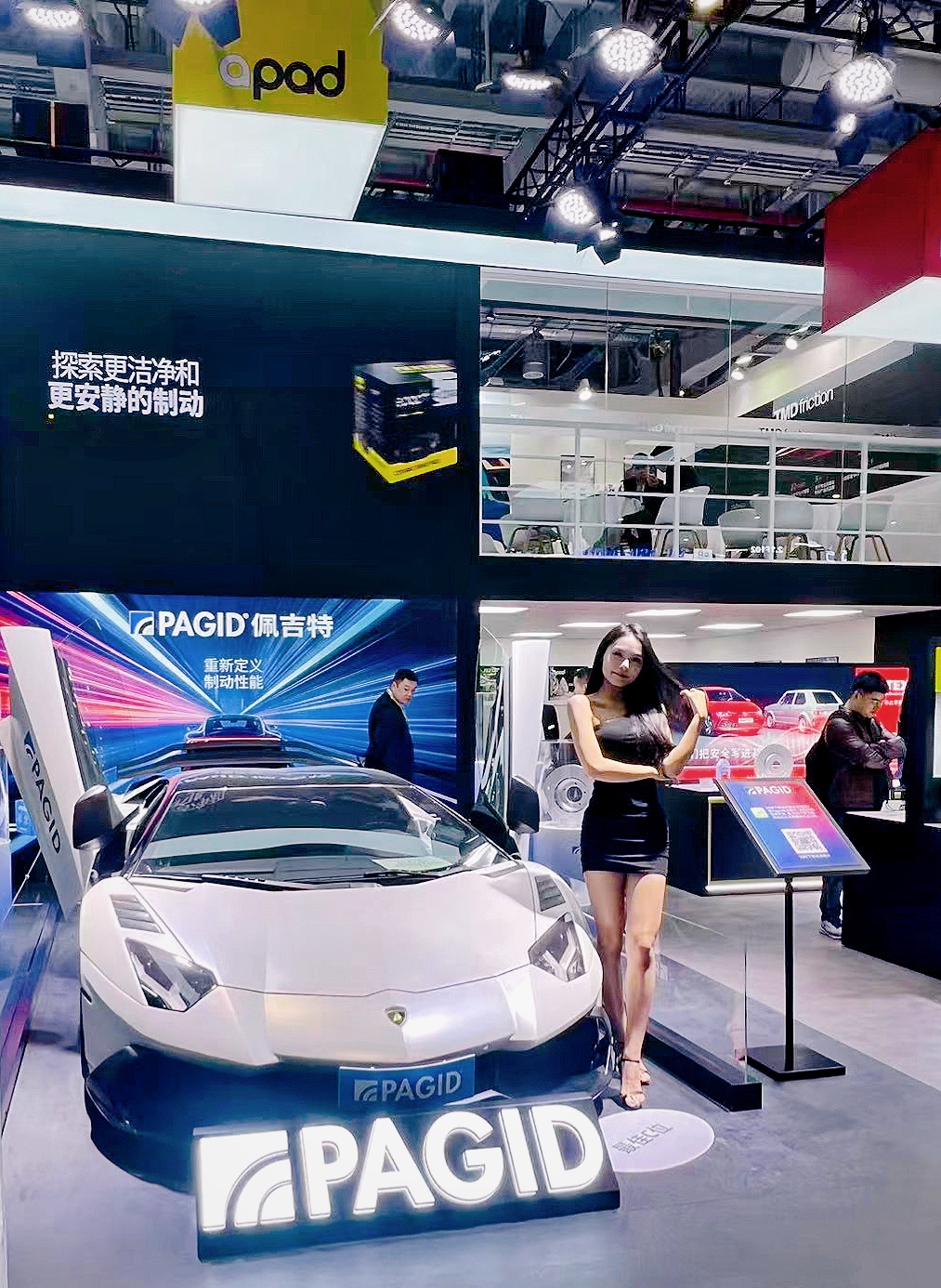 2025年上海法兰克福国际汽配展汽车配件区展示的佩吉特高性能刹车片。供图/贺耀辉