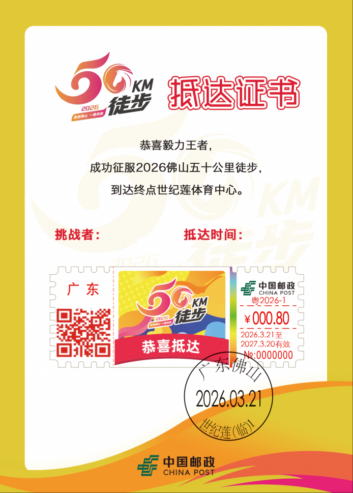 没有报名参加活动的市民:如果也希望拿到抵达证书,在3月21日活动当天到世纪莲终点中国邮政摊位,购买徒步纪念奖牌,也可获赠抵达证书。