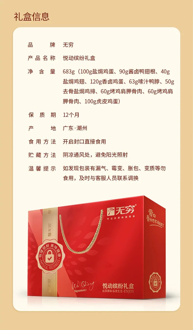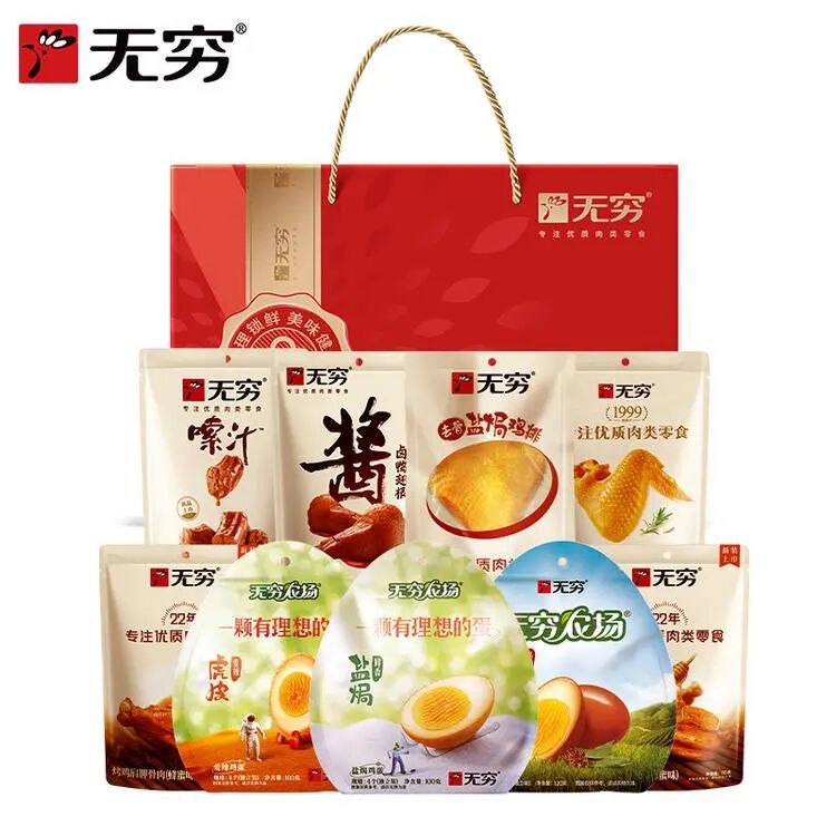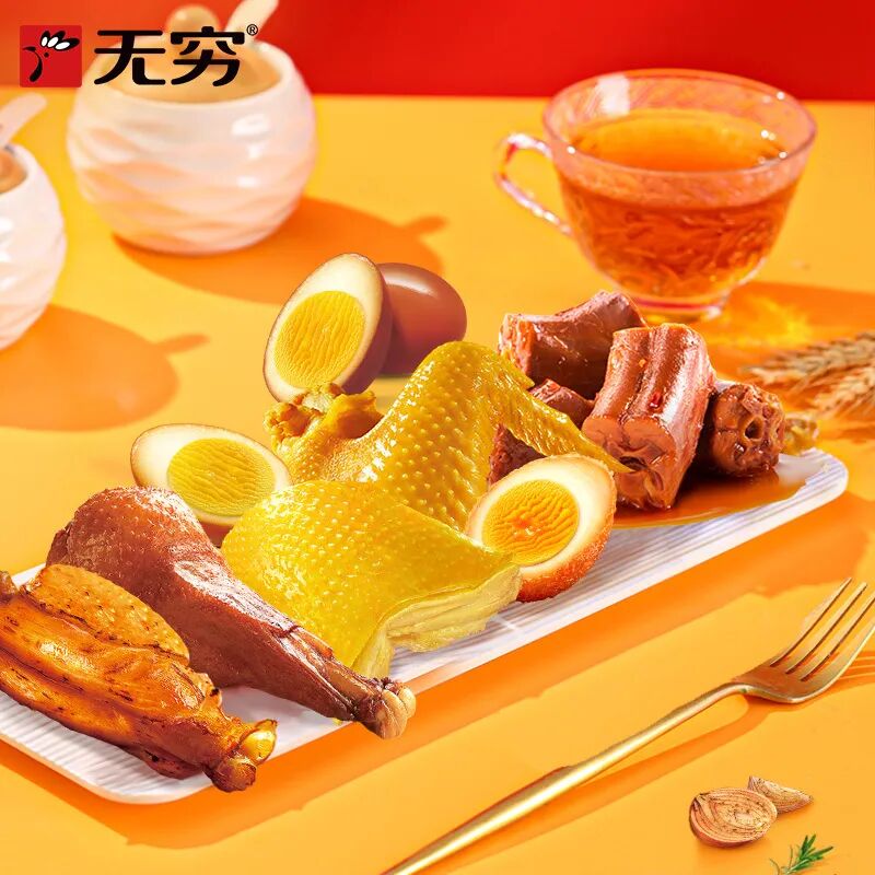 内含:100g盐焗鸡蛋+90g酱卤鸭翅根+40g盐焗鸡翅+120g香卤鸡蛋+63g嗦汁鸭脖+50g去骨盐焗鸡排+60g烤鸡肩胛骨肉*2袋+100g虎皮鸡蛋