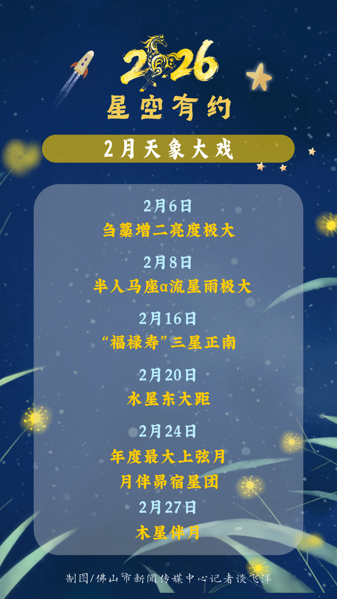 2月“春节档”将有多部“天象大片”上映,其中2月16日除夕当晚,可在南面天空观赏代表福、禄、寿的参宿三星;2月20日正月初四,水星迎来东大距,也是本年度的首次大距;2月24日年度最大上弦月和月伴昴星团将同时上演,2月27日木星伴月。