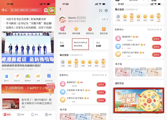 方式二:参与佛山+客户端积分兑换赢好礼