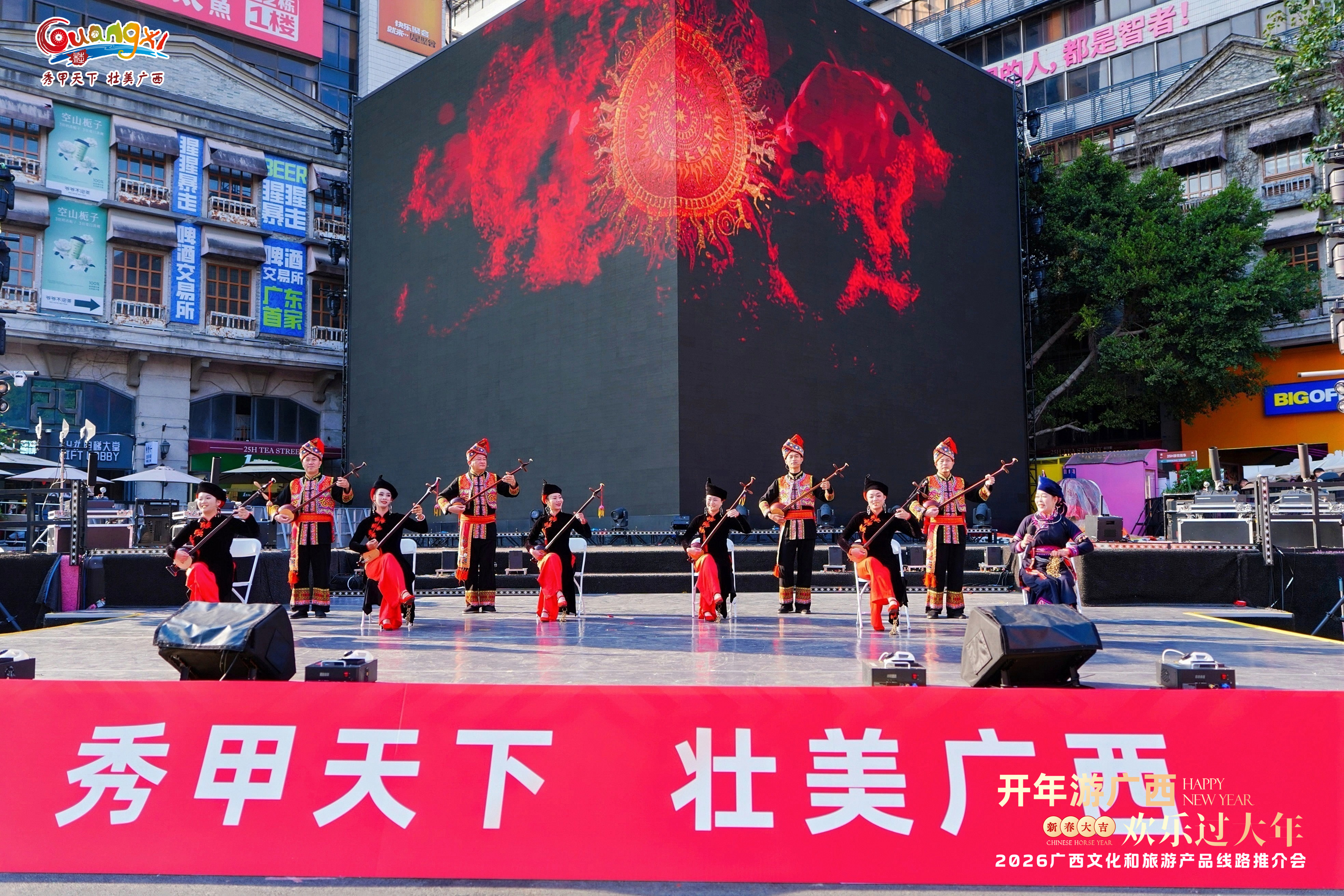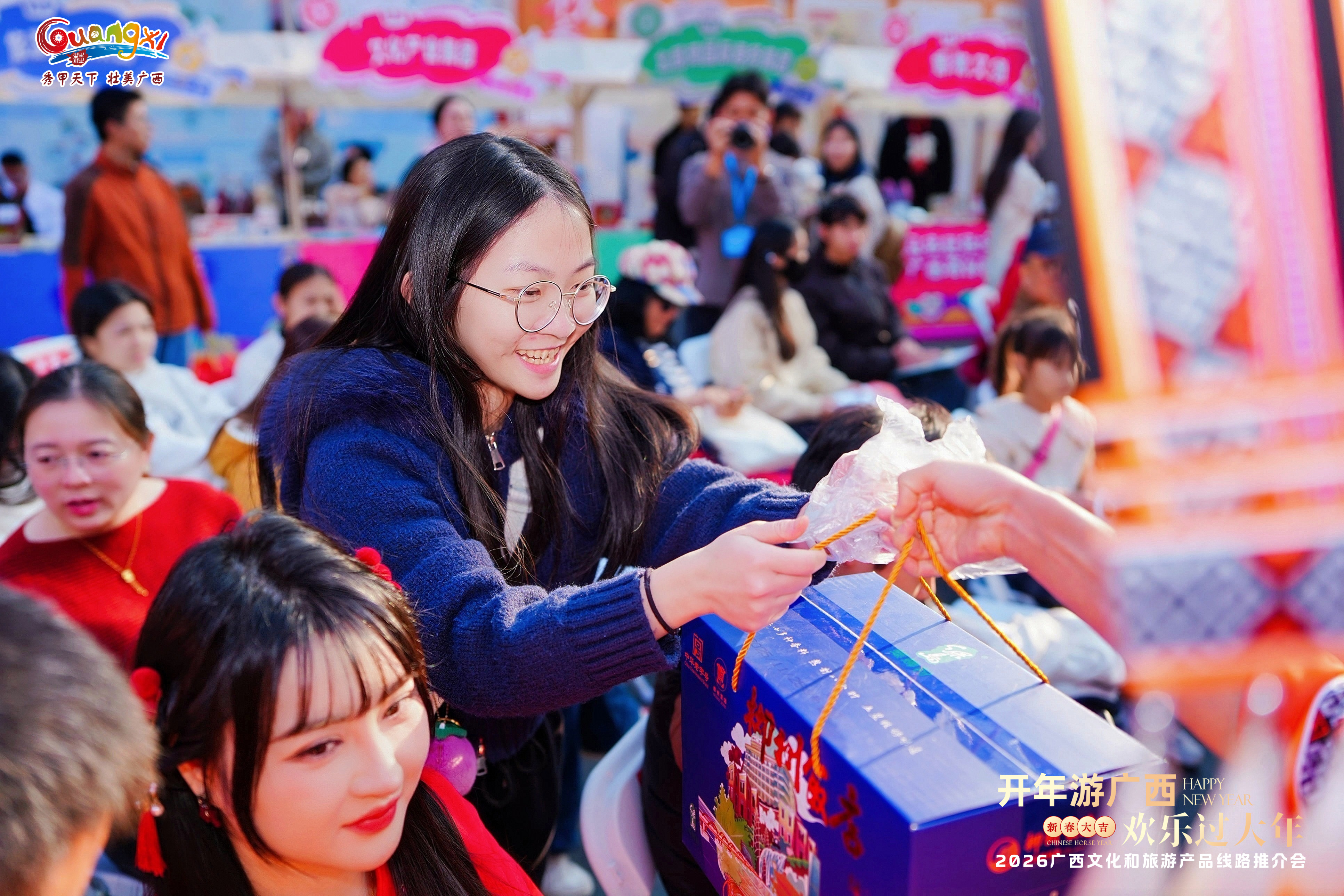 活动现场自治区相关厅局、文旅企业及全区14个地市联手,集中呈现八桂大地的自然风光、康养资源、博物文创、非遗民俗和特色美食。除了精彩纷呈的文艺节目展现广西独特风情,现场还特设“马年赶年圩 广西有好礼”主题文旅市集,将传统推介会转化为“可逛、可玩、可品、可购”的文旅市集,让佛山市民在浓浓年味中一步一景感受广西地道风味和文旅魅力。