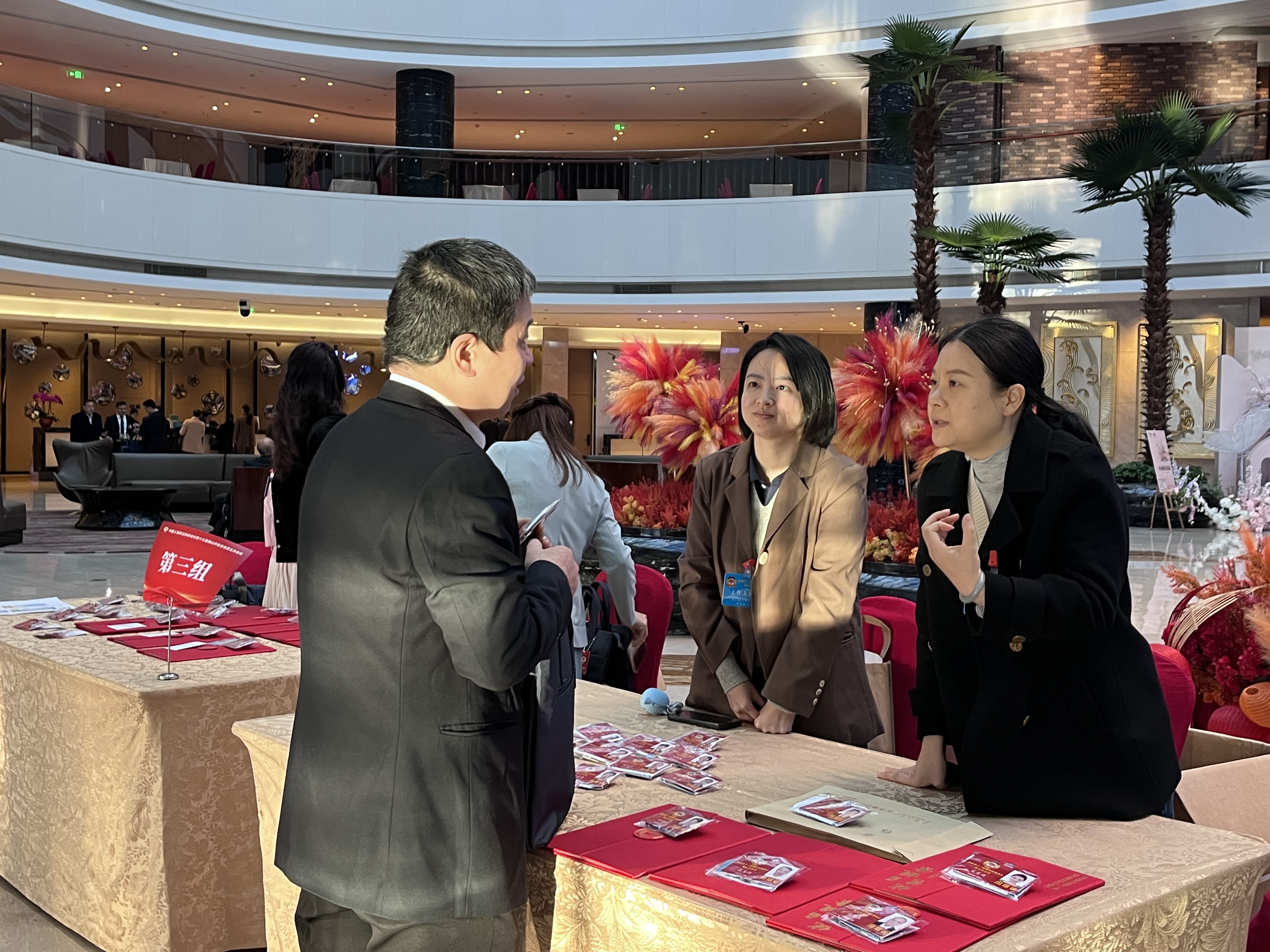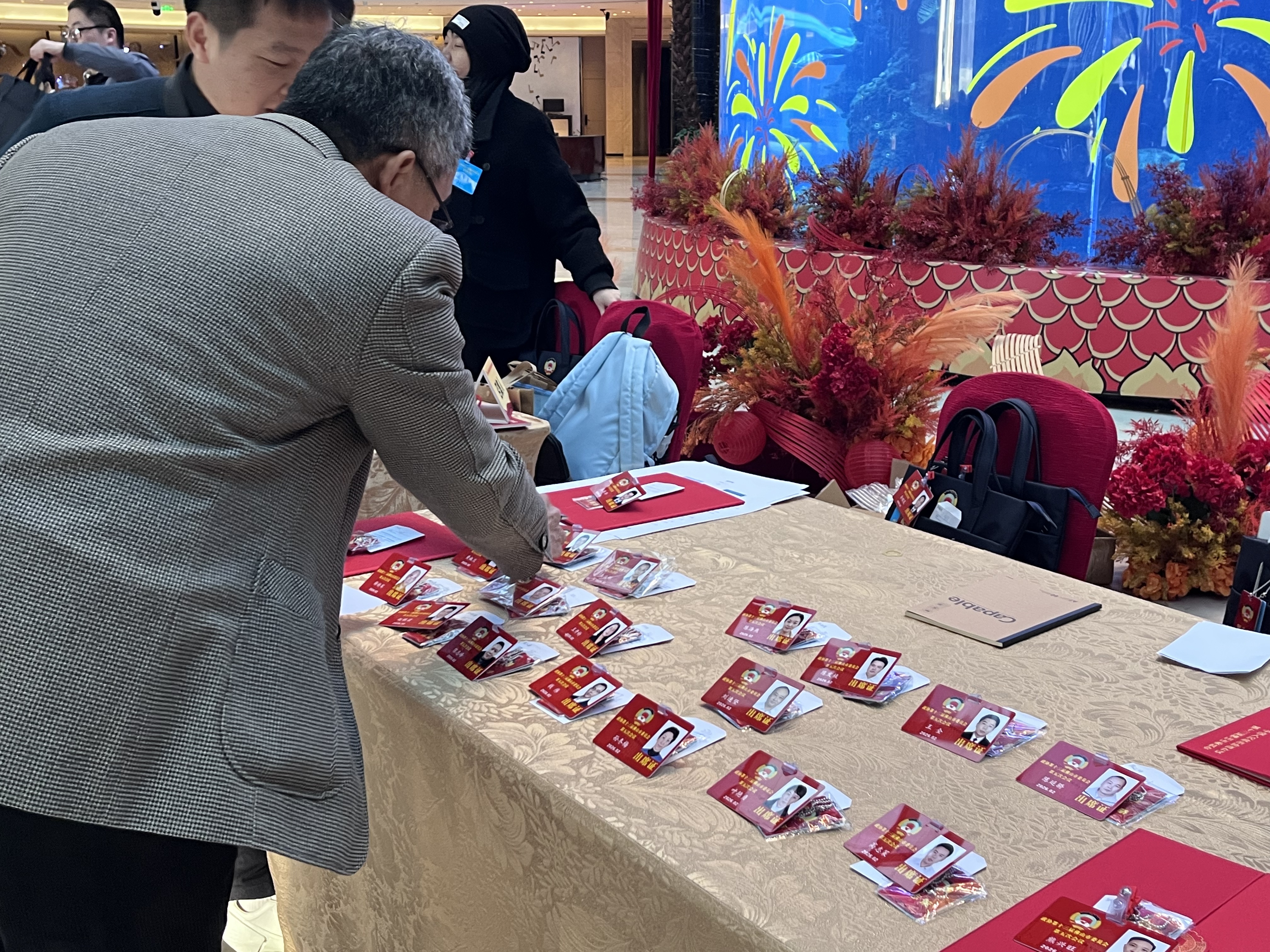 签到、佩戴委员证、领取会议材料……政协委员们在工作人员的指引下,有条不紊地完成各项签到程序。完成签到后,委员们认真翻阅会议材料,以最饱满的精神迅速进入两会状态。